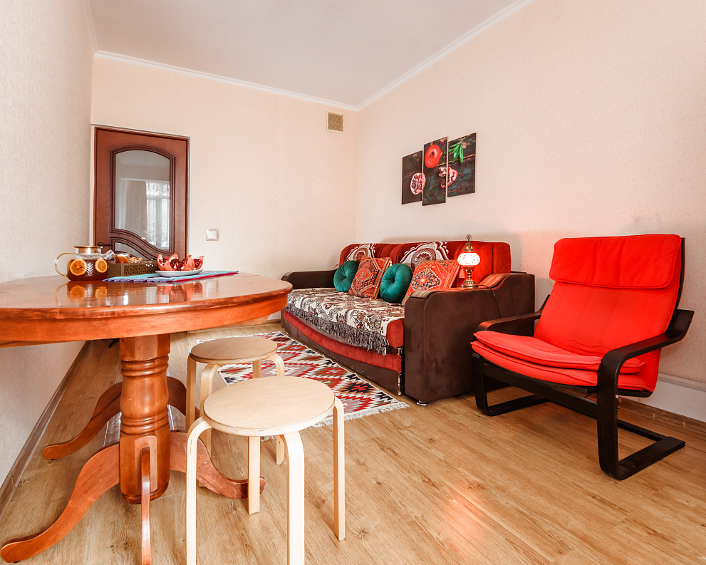 Идеальная квартира для командировок и отпуска. Просторная квартира недалеко от Красной Площади. Полностью оборудована для комфортного проживания. В гостиной двуспальный диван-кровать и 2 полуторные кровати, которые могут объединится в одну кровать. В столовой раскладной диван-кровать.