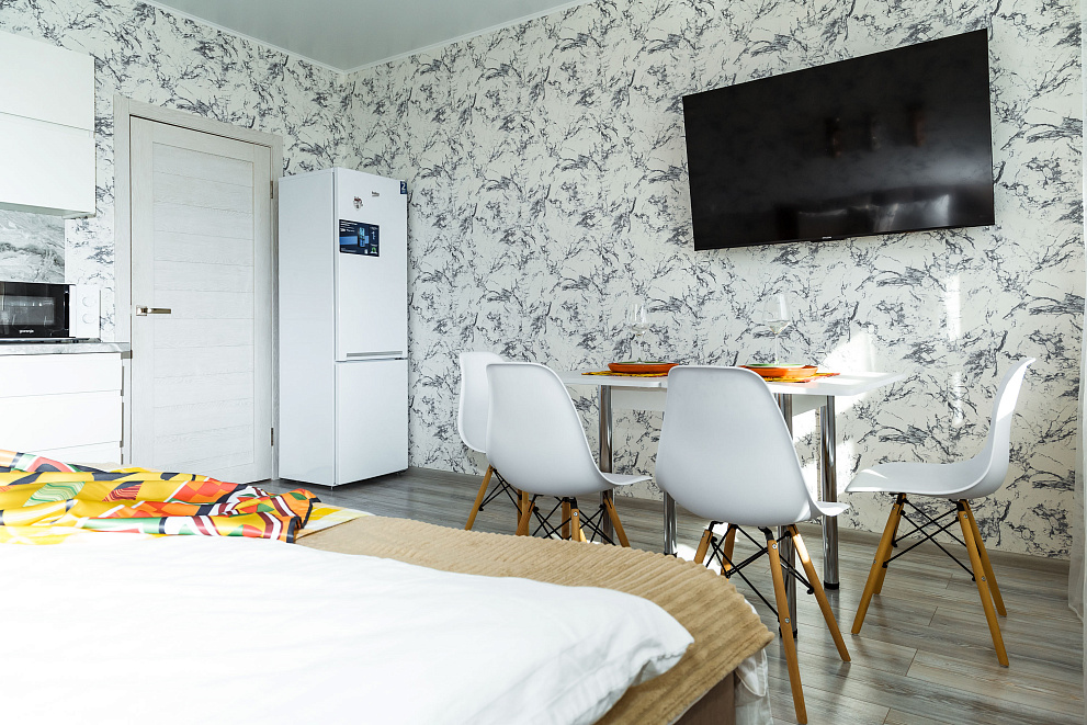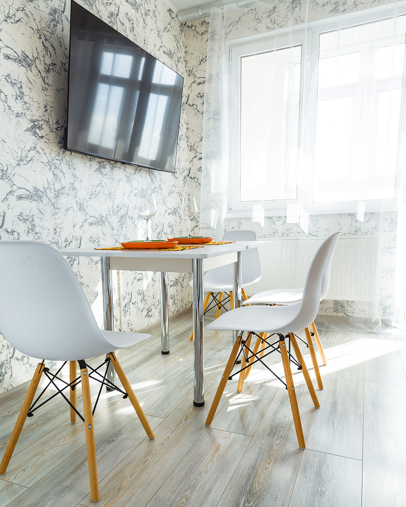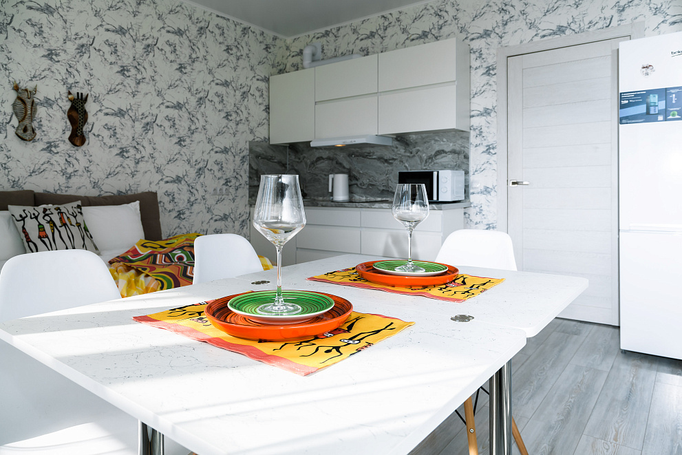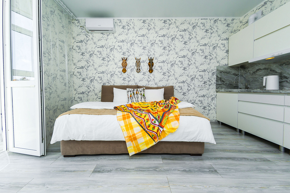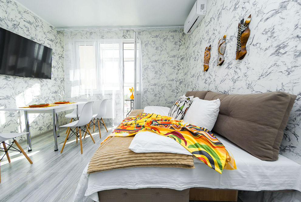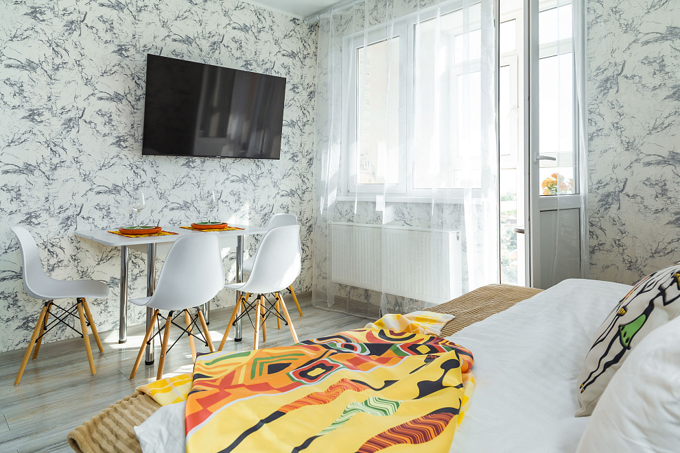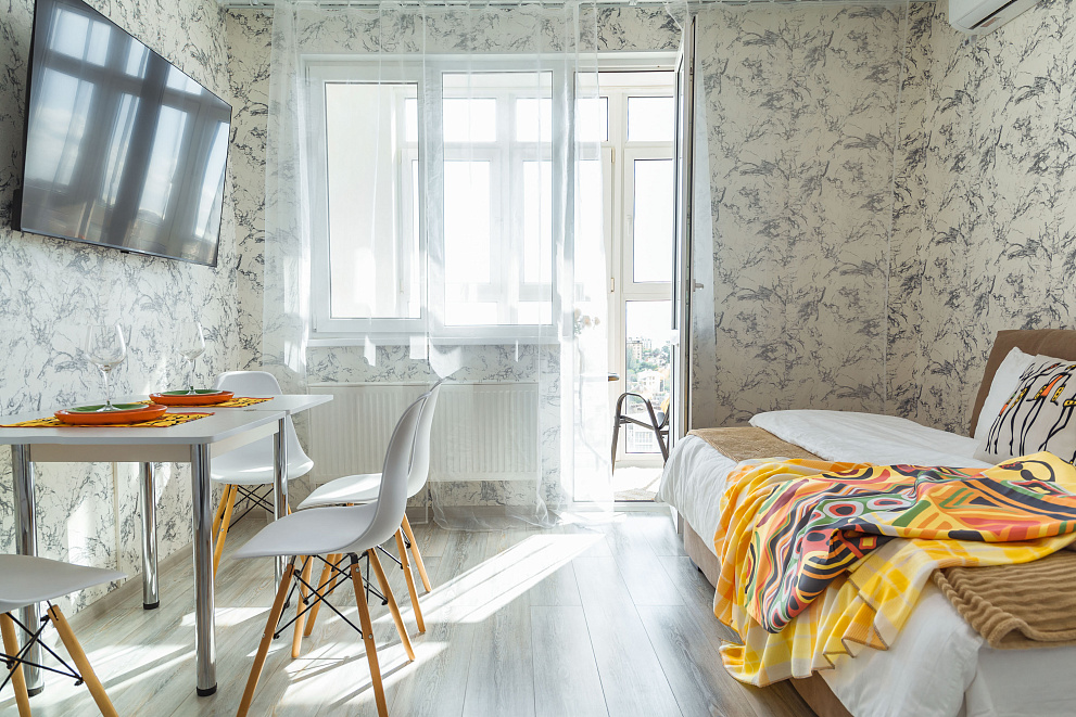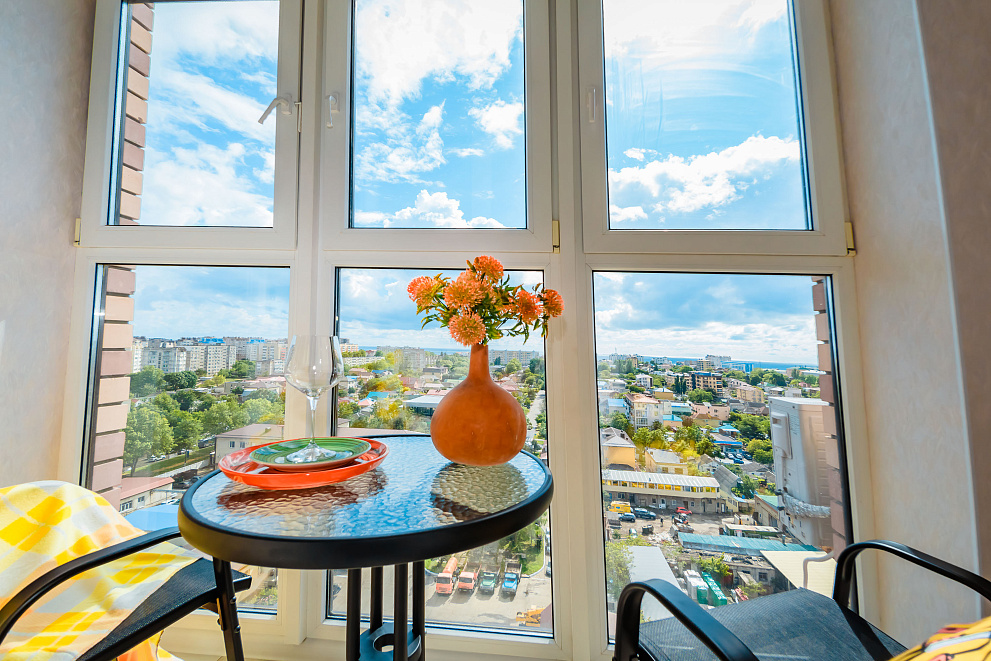 Квартира оборудована всем для комфортного проживания: новая мебель и бытовая техника (холодильник, стиральная машина, варочная панель, микроволновая печь, электрический чайник, вытяжка, сплит-система, телевизор, фен для волос, есть Wi-Fi,), а также гладильные принадлежности. На балконе выполнено панорамное остекление с видом на город и Черное море. В ванной комнате всегда свежие полотенца и ванные принадлежности, а кухня оснащена комплектом посуды и всем необходимым инвентарем для приготовления пищи.