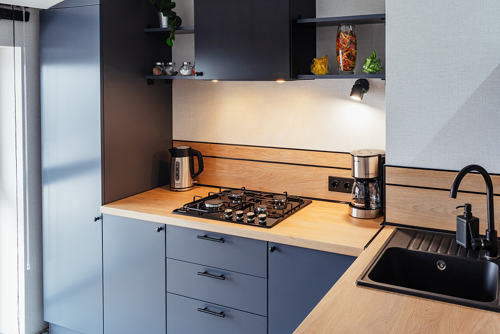 Полностью оборудованная кухня.