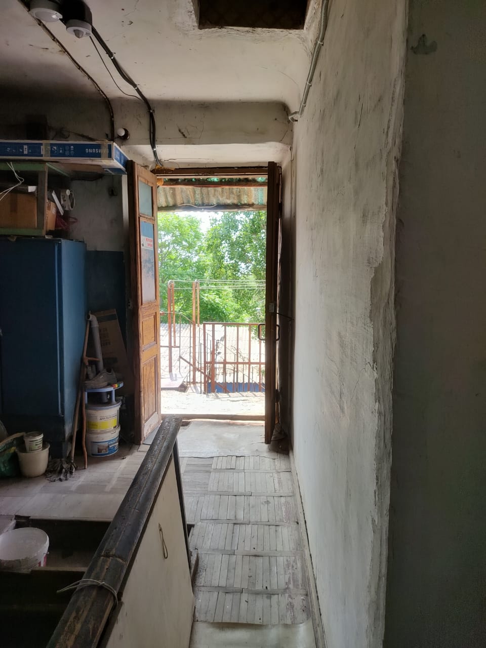 2 Левая, разделяющая квартиры стенка на кухне деревянная (в жилых комнатах обычные) и с неиспользуемой дверью в подсобное помещение в нашей квартире,