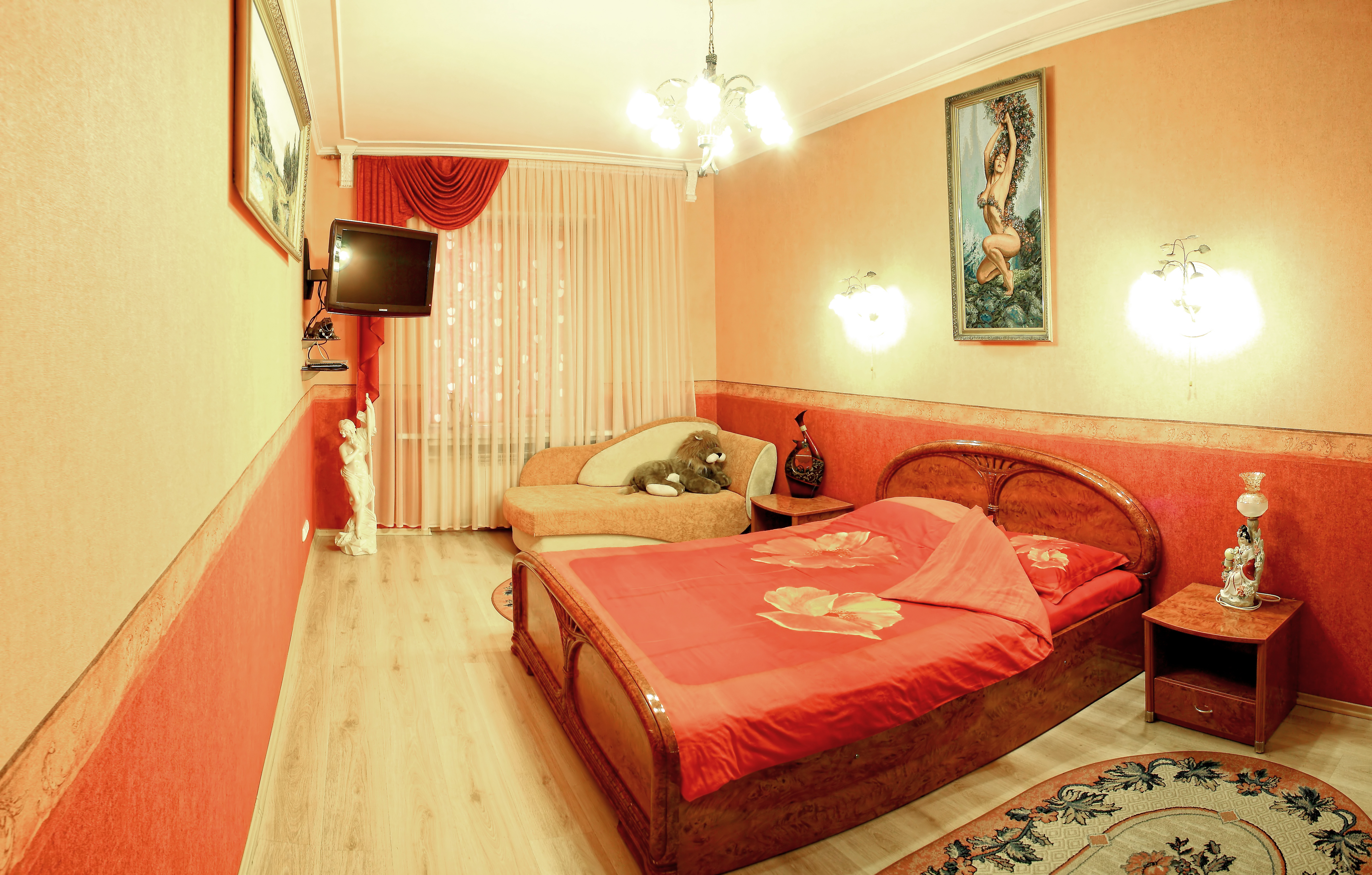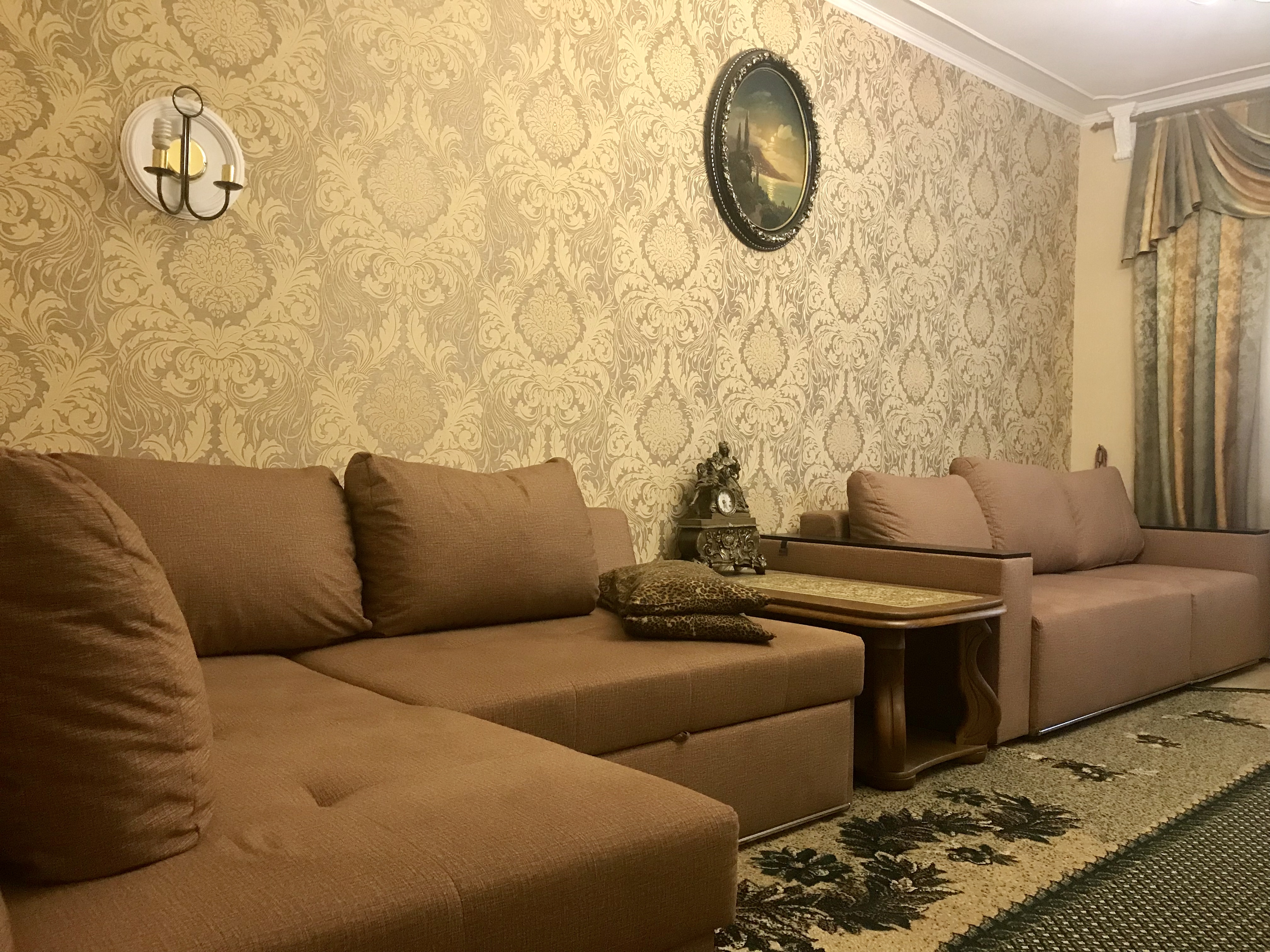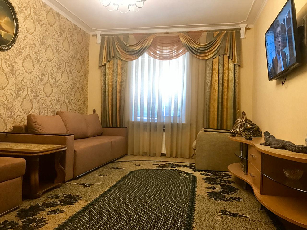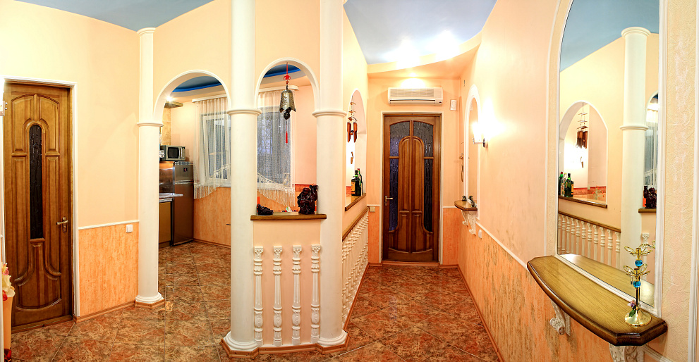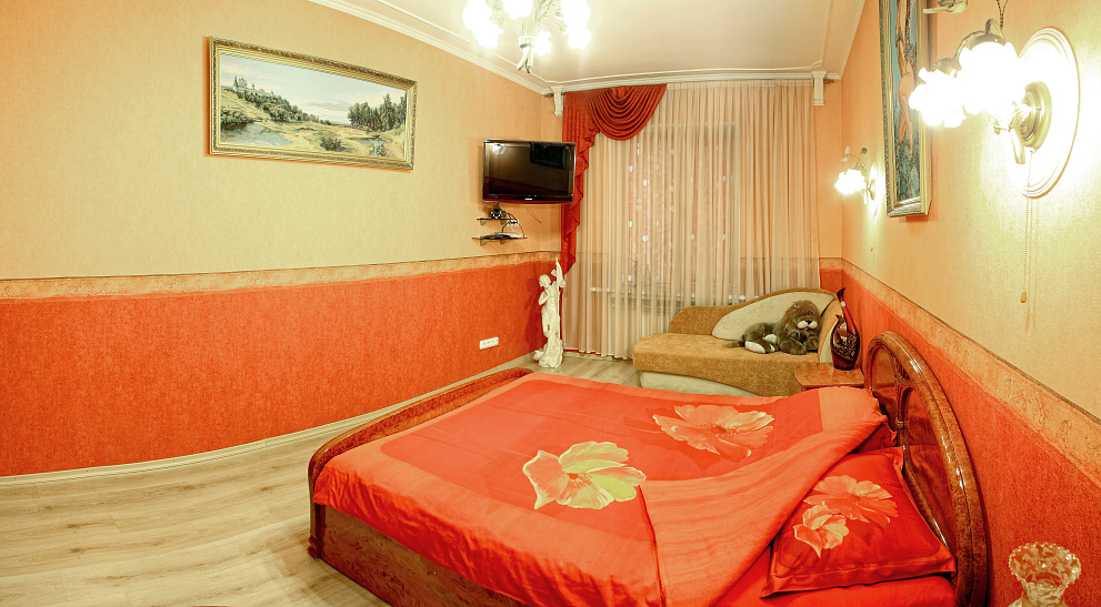 Шикарная, крупногабаритная, VIP квартира с отдельным входом в центре города. Дизайнерский евроремонт выполнен из дорогих материалов с элементами лепнины в классическом стиле. Две раздельные комнаты: 1) Зал: 25м2, 3 метра потолки. Телевизор с диагональю 72см, музыкальный центр, спутниковое ТВ, стильная "горка", угловой, натуральный, кожаный диван с американской раскладушкой + кожаное кресло. 2) Спальня: 22м2, итальянский гарнитур, кровать с ортопедическим матрацем, встроенный шкаф-купе, LCD телевизор 42 ", спутниковое ТВ, Wi-Fi. Кухня-студия выполнена в стиле "modern ", полы выложены испанской плиткой "эффект мокрого пола " с функцией "теплый пол" и укомплектована всей бытовой техникой. В квартире установлена газовая колонка Vaillant, которая даёт возможность пользоваться горячей водой круглосуточно. Санузел совмещенный, выложенный итальянской плиткой, душкабина, встроенный унитаз, пол теплый. Лоджия зашита евровагонкой, пол- испанской плиткой, шкаф-купе и барная мебель.