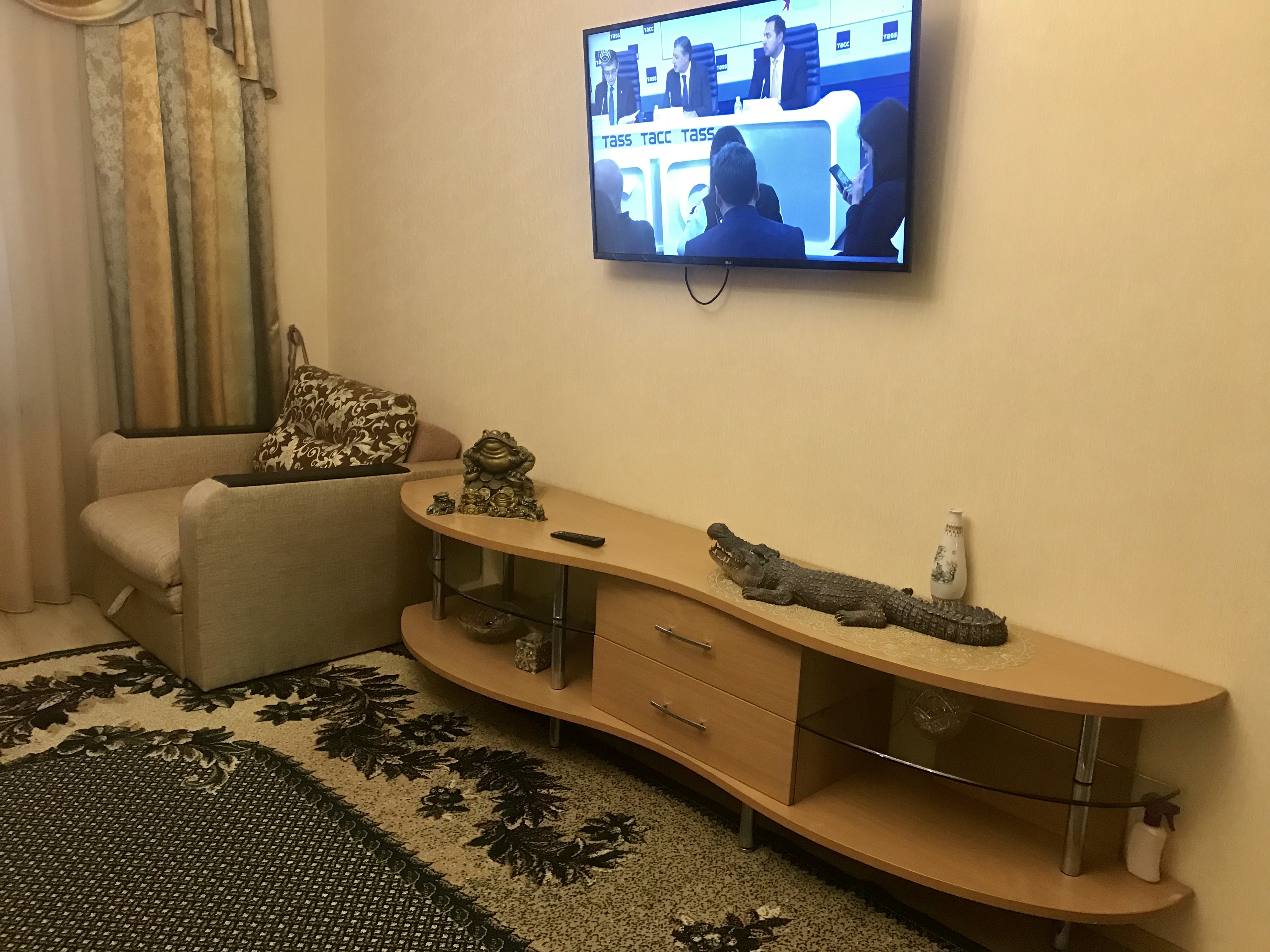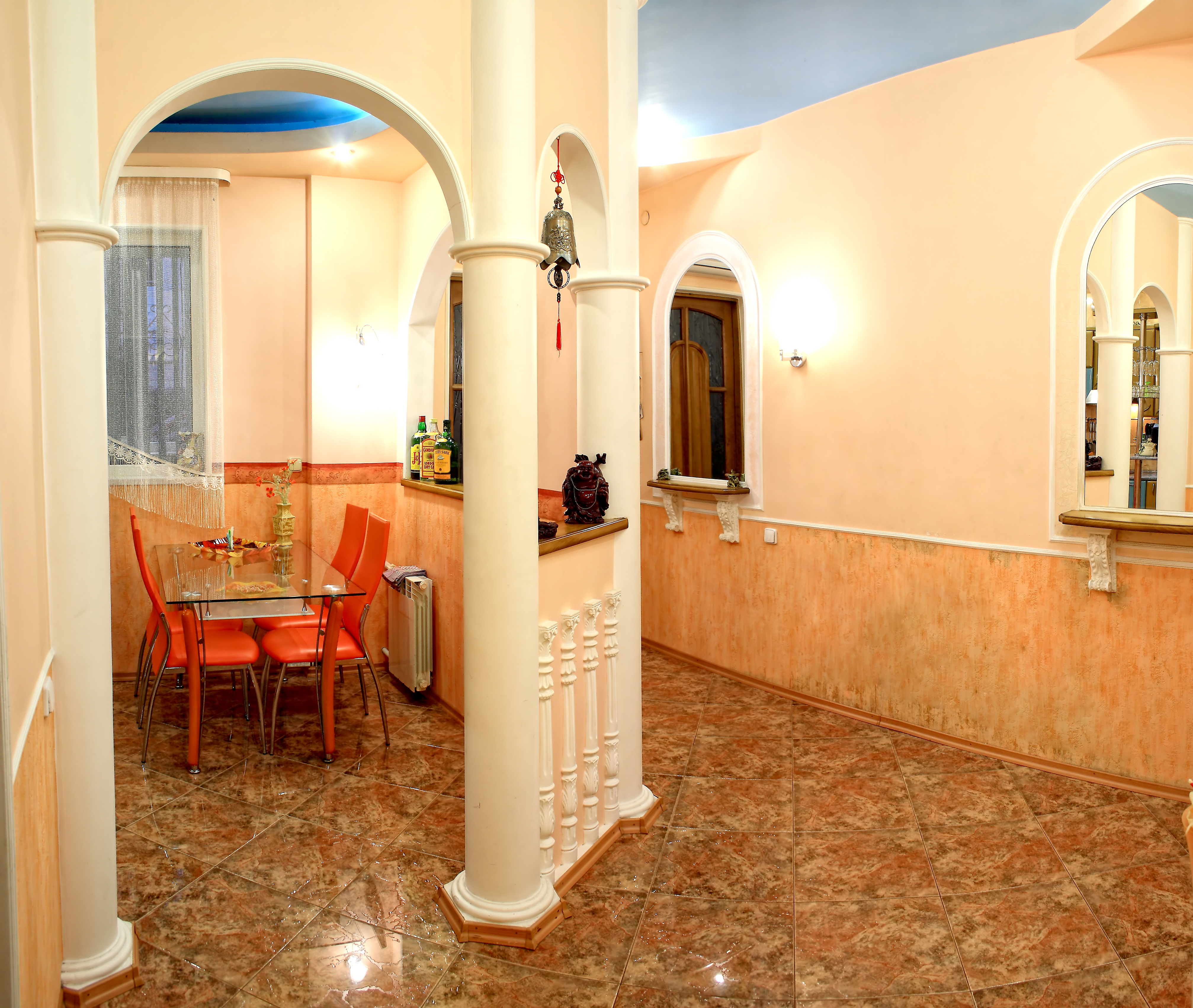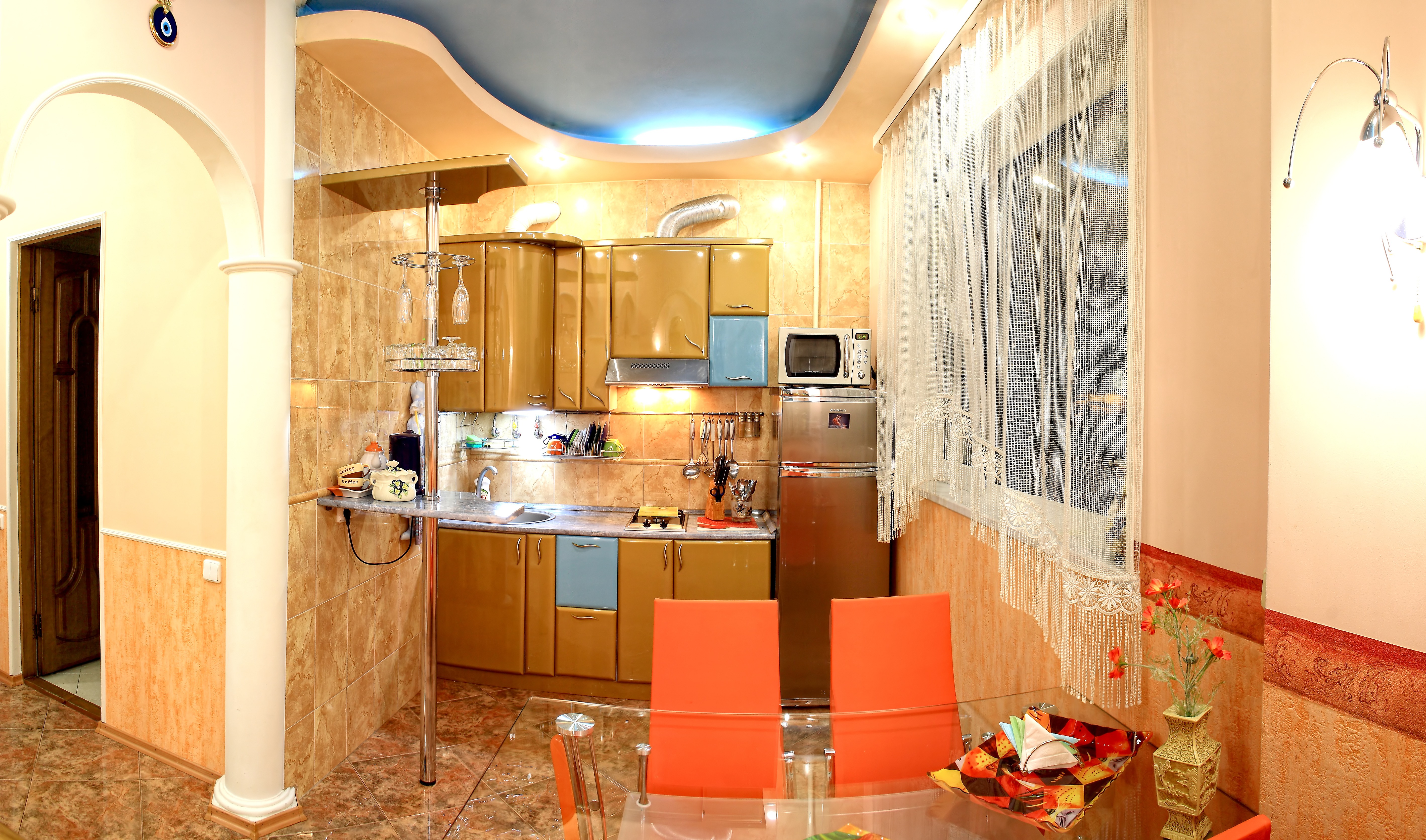 Шикарная, крупногабаритная, VIP квартира с отдельным входом в центре города. Дизайнерский евроремонт выполнен из дорогих материалов с элементами лепнины в классическом стиле. Две раздельные комнаты: 1) Зал: 25м2, 3 метра потолки. Телевизор с диагональю 72см, музыкальный центр, спутниковое ТВ, стильная "горка", угловой, натуральный, кожаный диван с американской раскладушкой + кожаное кресло. 2) Спальня: 22м2, итальянский гарнитур, кровать с ортопедическим матрацем, встроенный шкаф-купе, LCD телевизор 42 ", спутниковое ТВ, Wi-Fi. Кухня-студия выполнена в стиле "modern ", полы выложены испанской плиткой "эффект мокрого пола " с функцией "теплый пол" и укомплектована всей бытовой техникой. В квартире установлена газовая колонка Vaillant, которая даёт возможность пользоваться горячей водой круглосуточно. Санузел совмещенный, выложенный итальянской плиткой, душкабина, встроенный унитаз, пол теплый. Лоджия зашита евровагонкой, пол- испанской плиткой, шкаф-купе и барная мебель.