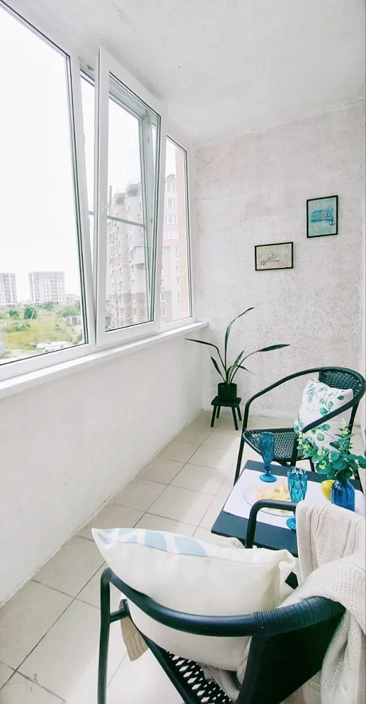 · Вечером можно попить чай или кофе на застеклённой лоджии с видом на море! Вас ждёт подвесное кресло-гамак на балконе с уютной подушкой и видом на море