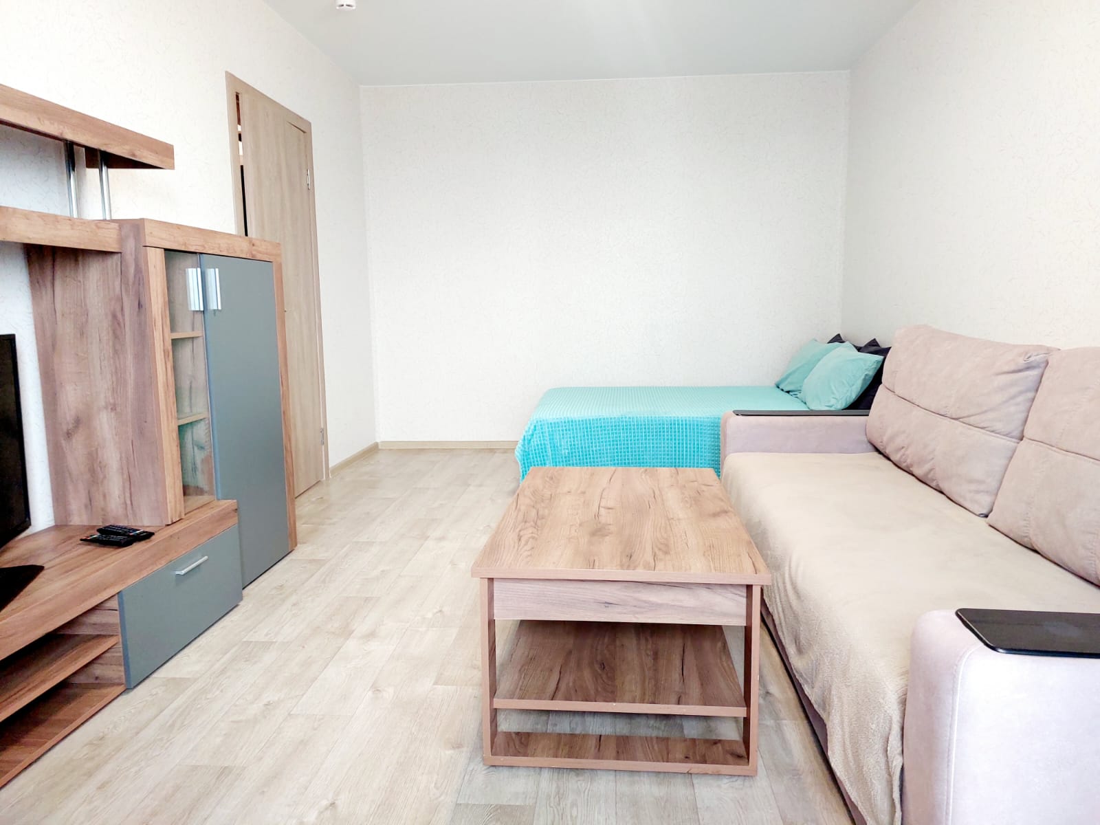 4 спальных места (2+2): двуспальная кровать+диван
