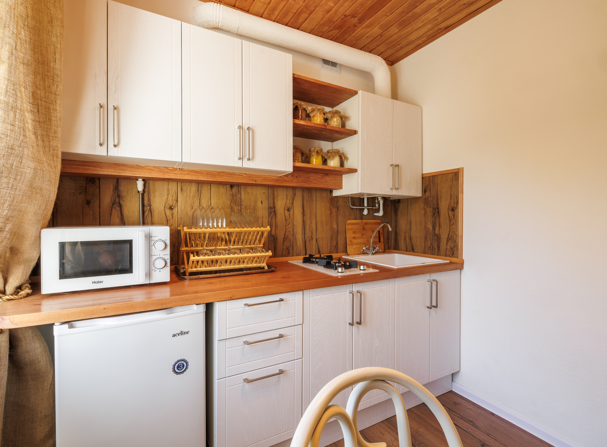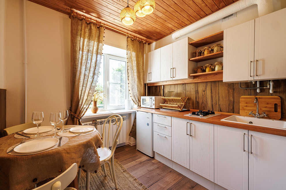 На всех наших объектах есть всё самое необходимое: фен, утюг, стиральная машина, чайник, микроволновка, плита, холодильник, столовые приборы и базовая посуда, чай и кофе.