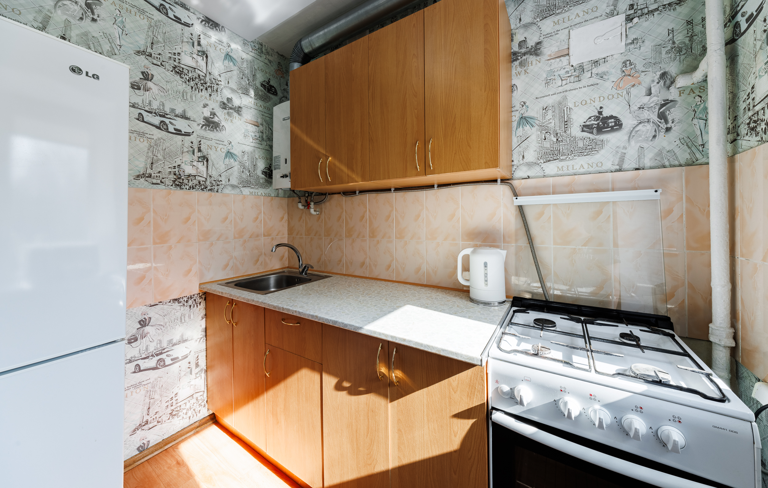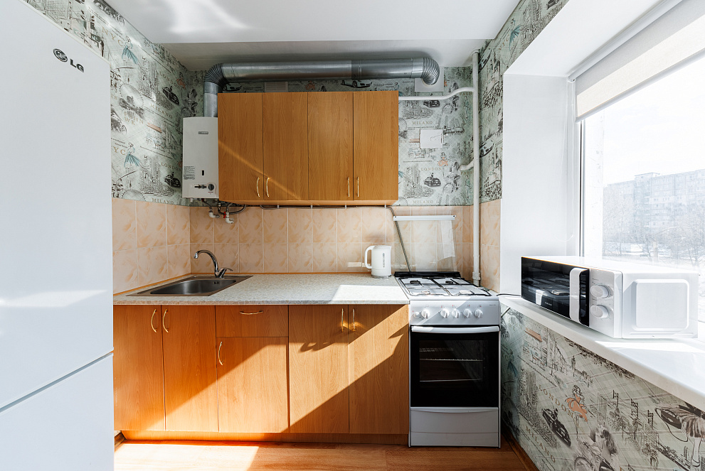 На всех наших объектах есть всё самое необходимое: фен, утюг, стиральная машина, чайник, микроволновка, плита, холодильник, столовые приборы и базовая посуда, чай и кофе.
