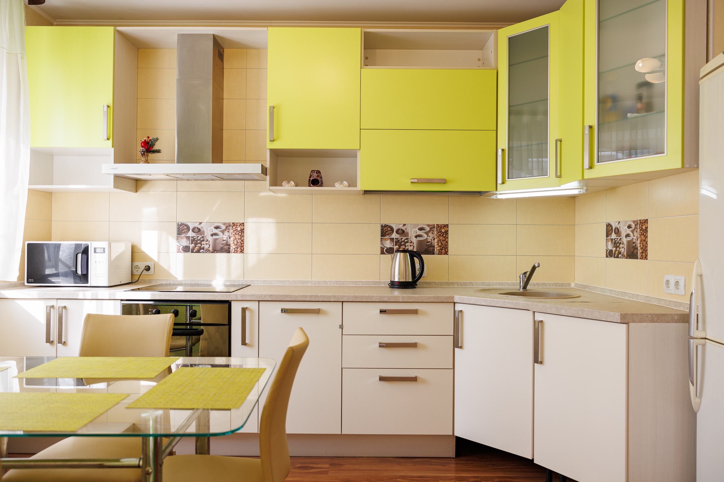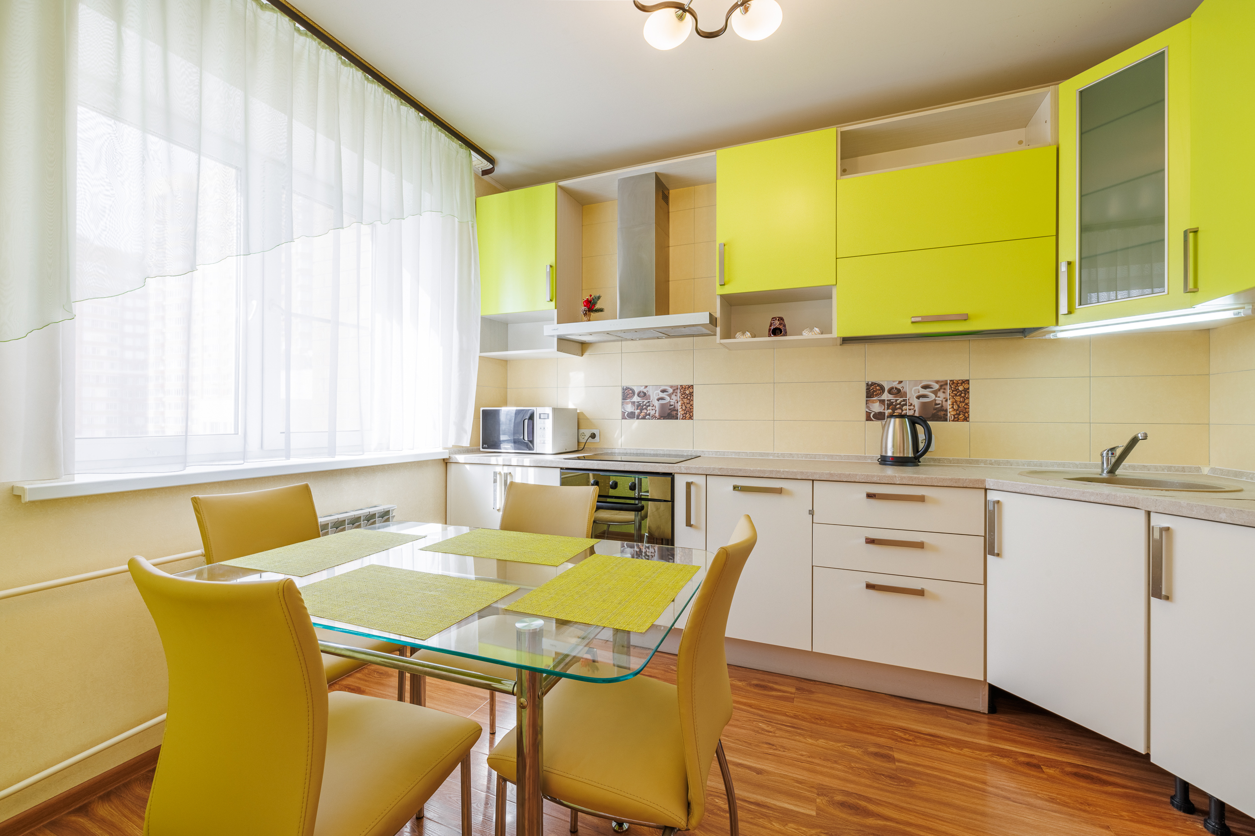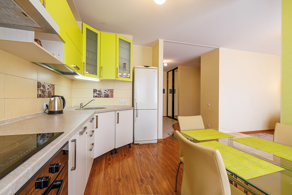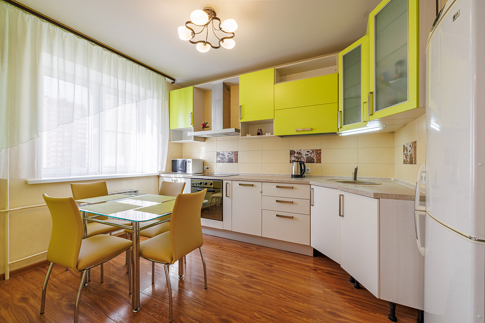 На всех наших объектах есть всё самое необходимое: фен, утюг, стиральная машина, чайник, микроволновка, плита, холодильник, столовые приборы и базовая посуда, чай и кофе.