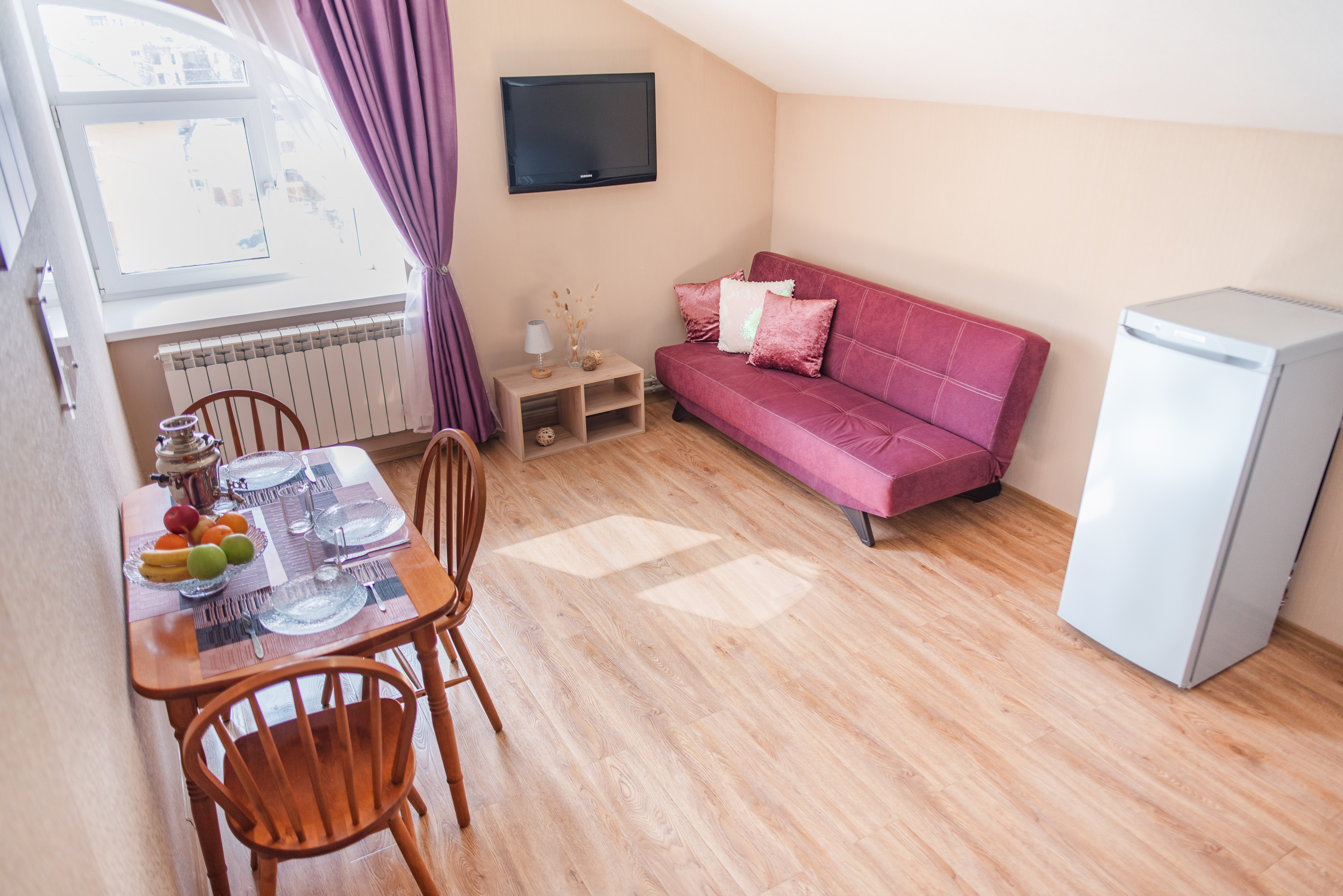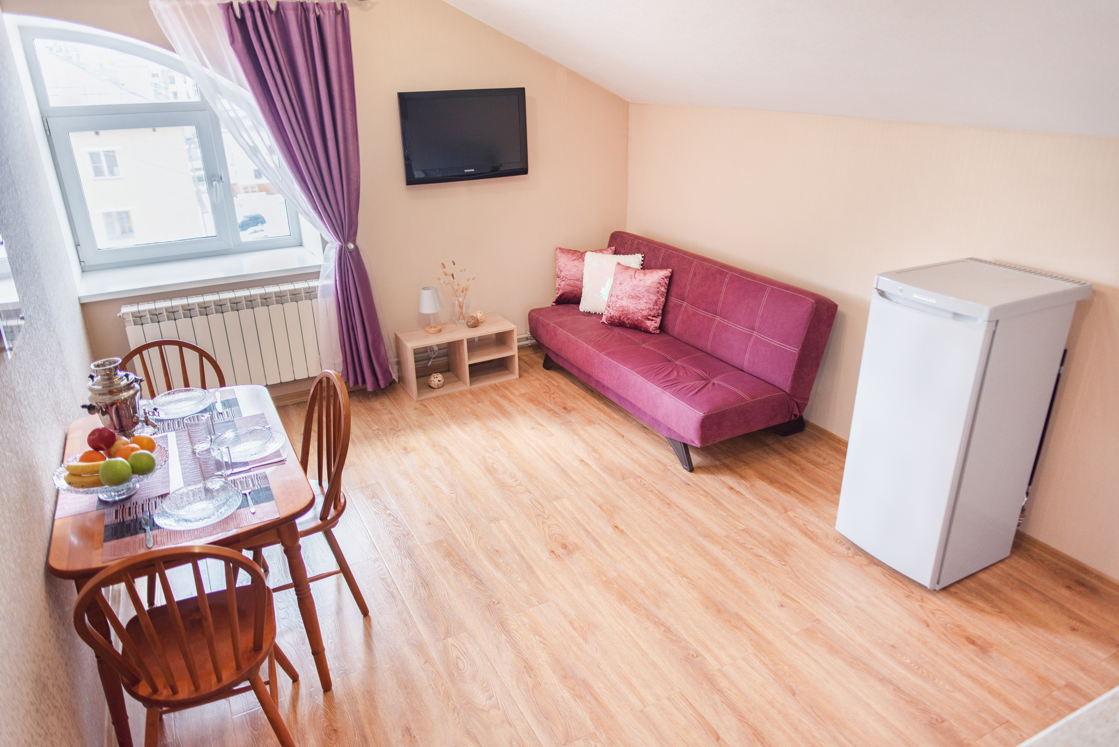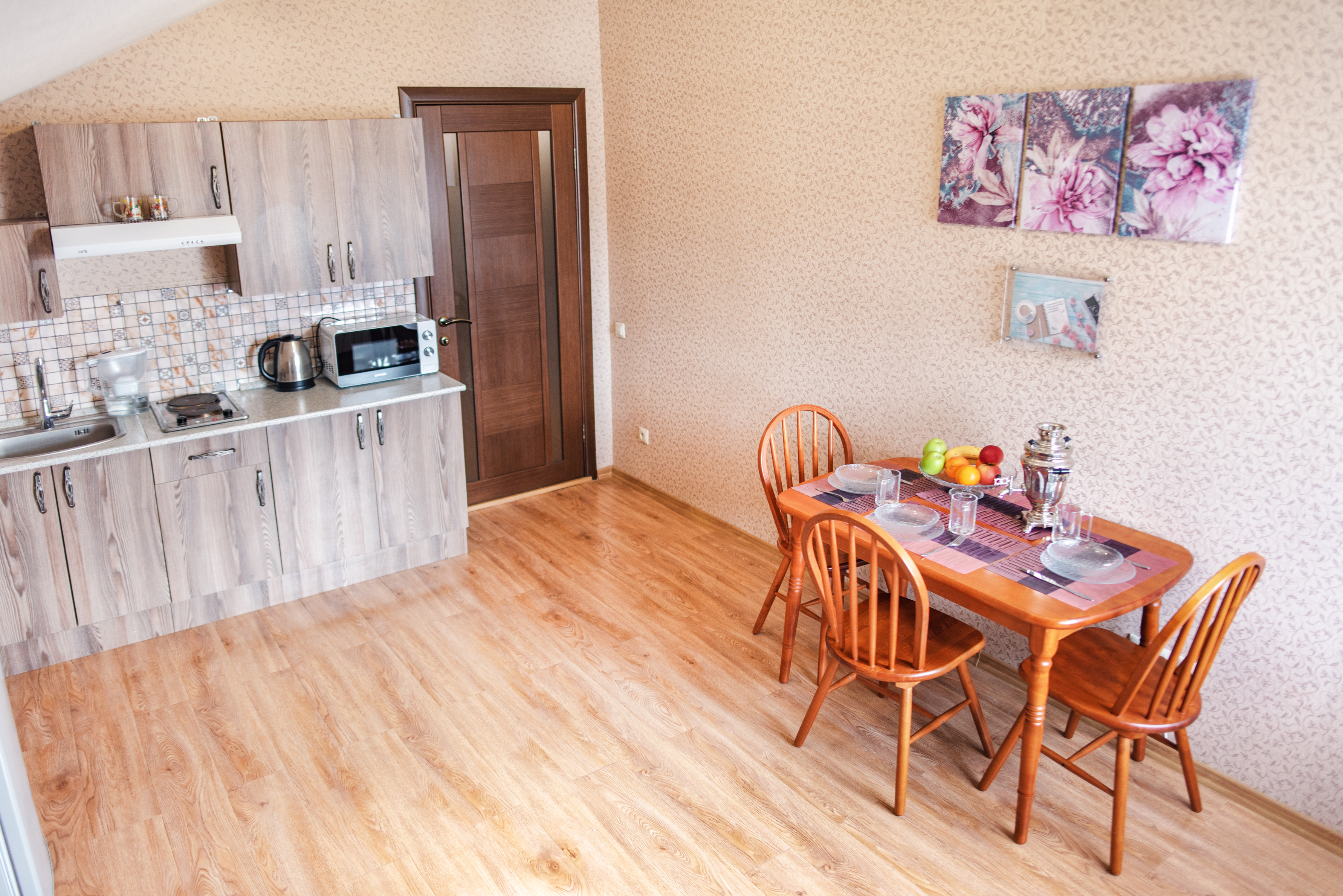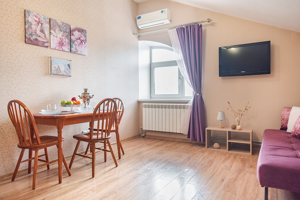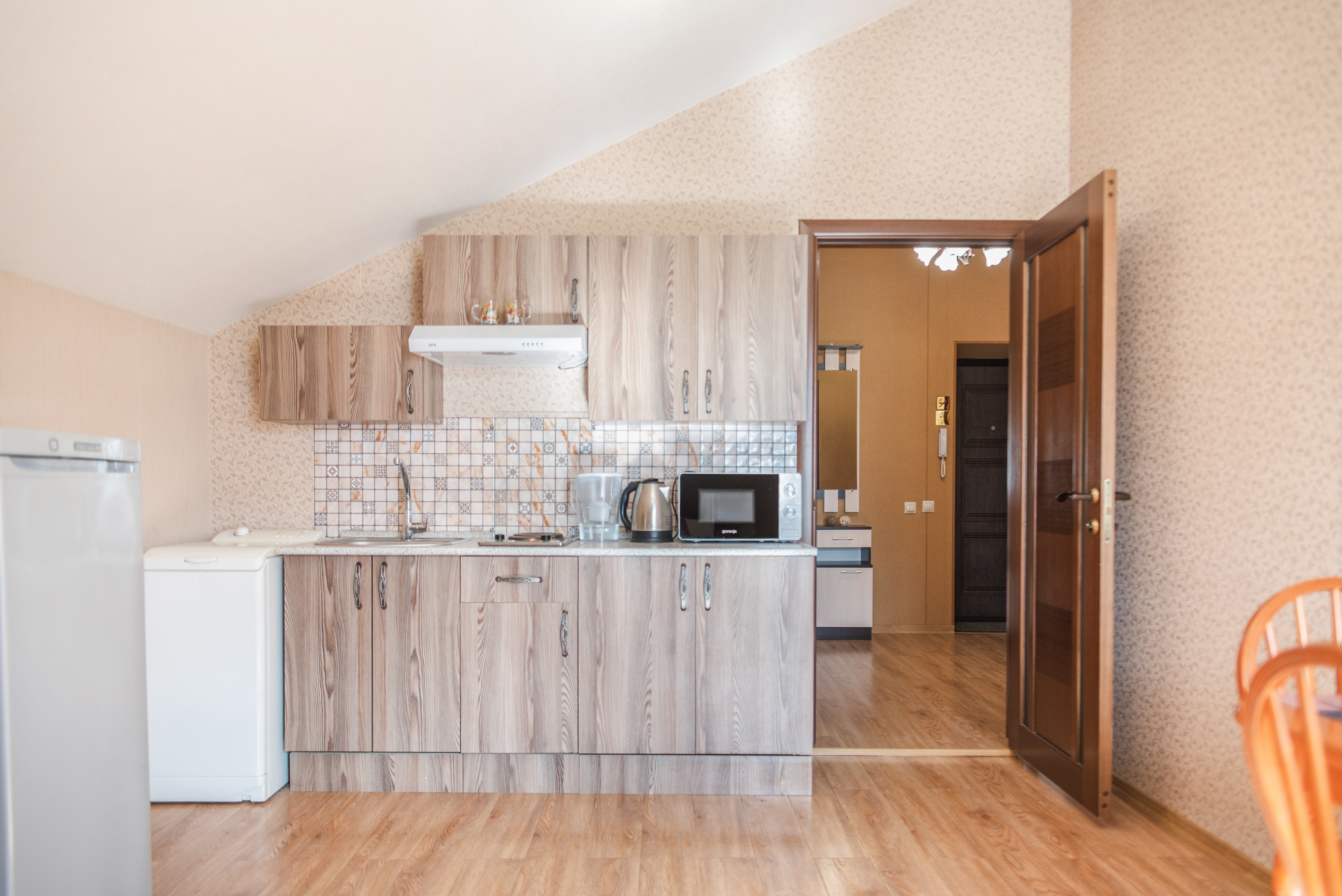 На всех наших объектах есть всё самое необходимое: фен, утюг, стиральная машина, чайник, микроволновка, плита, холодильник, столовые приборы и базовая посуда, чай и кофе.