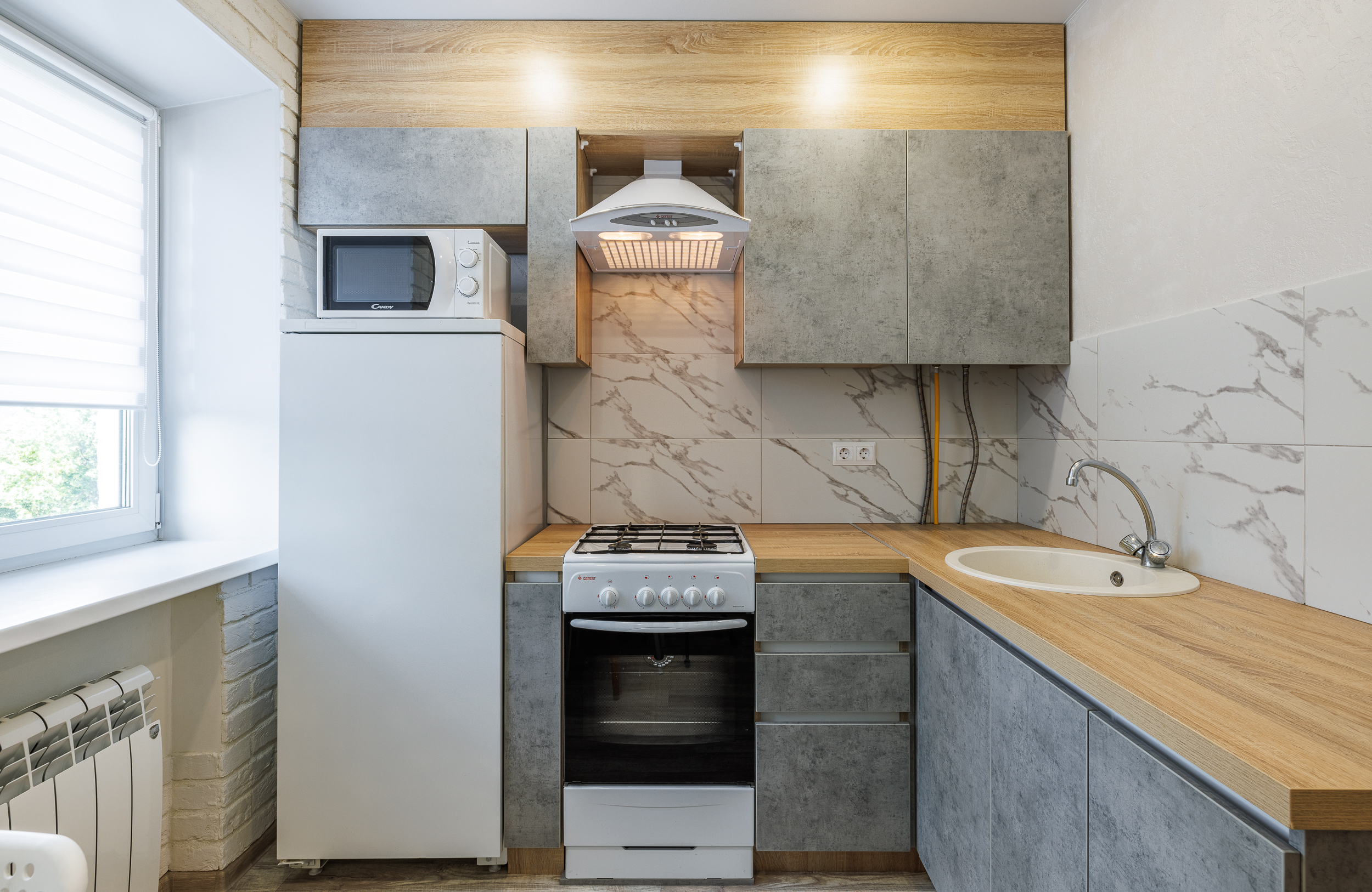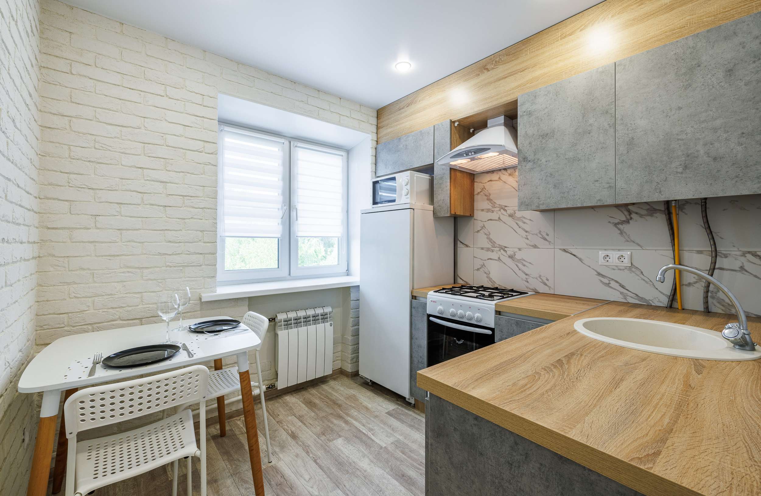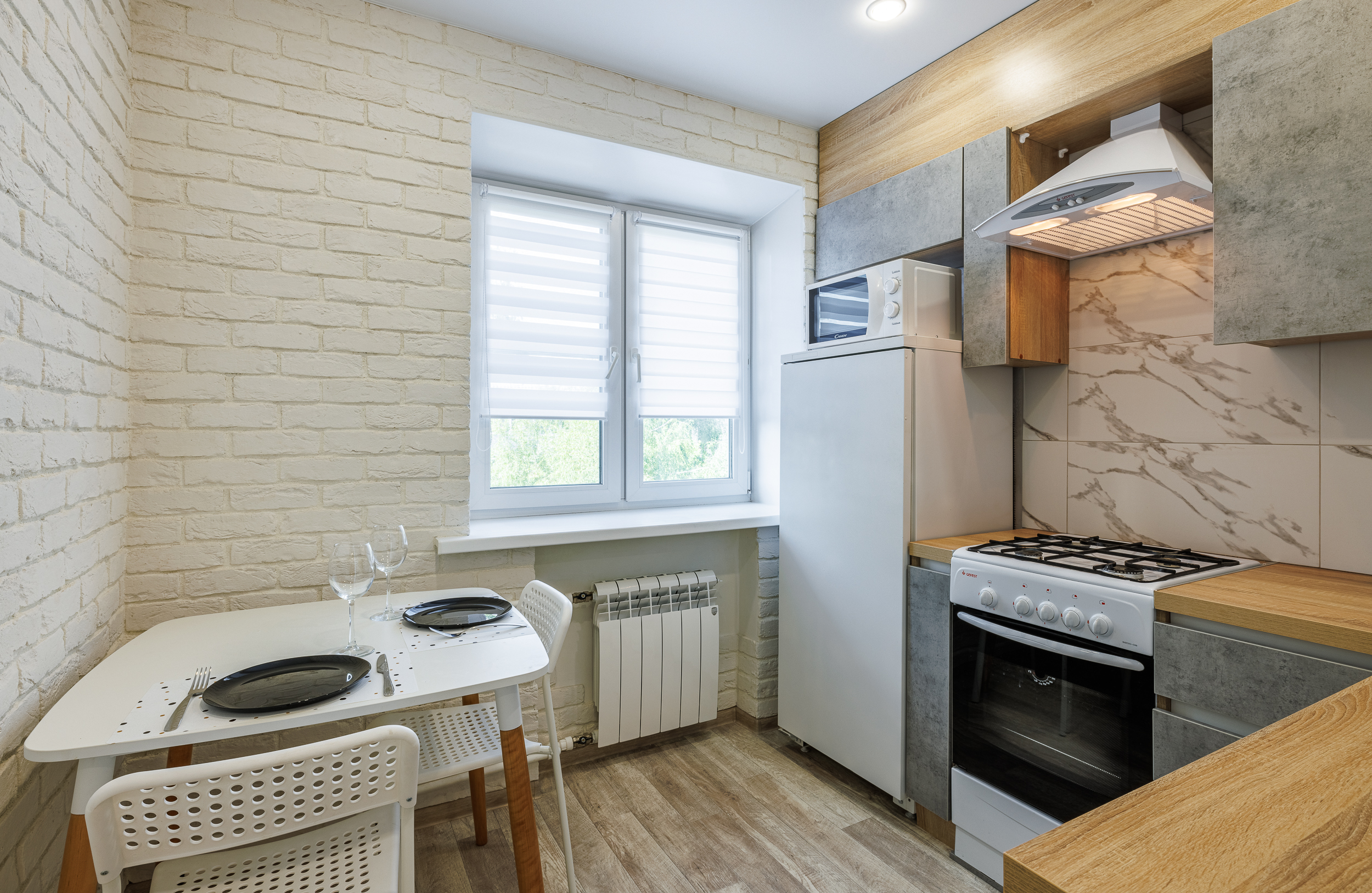 На всех наших объектах есть всё самое необходимое: фен, утюг, стиральная машина, чайник, микроволновка, плита, холодильник, столовые приборы и базовая посуда, чай и кофе.