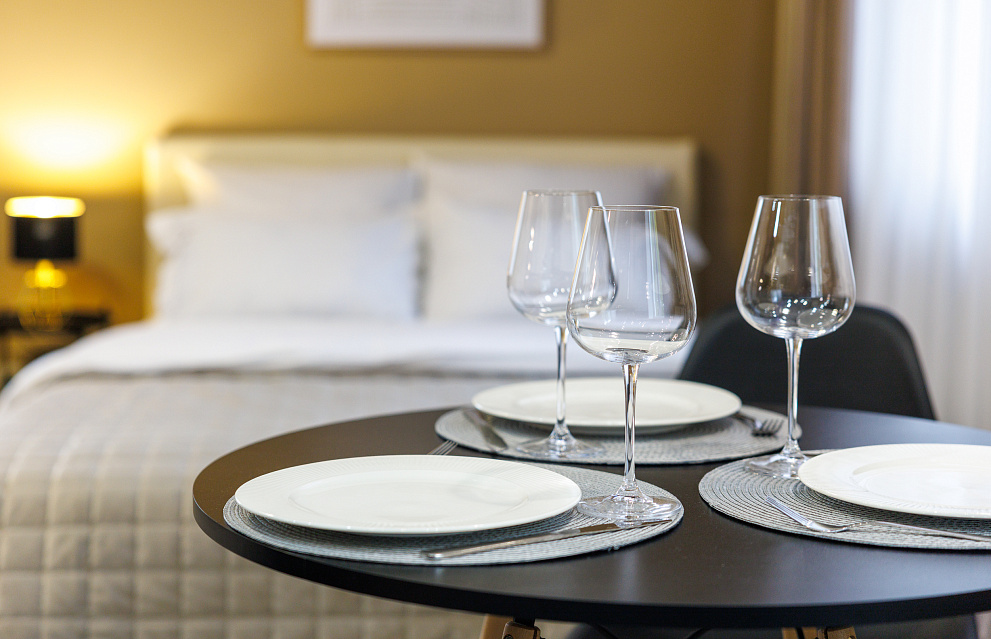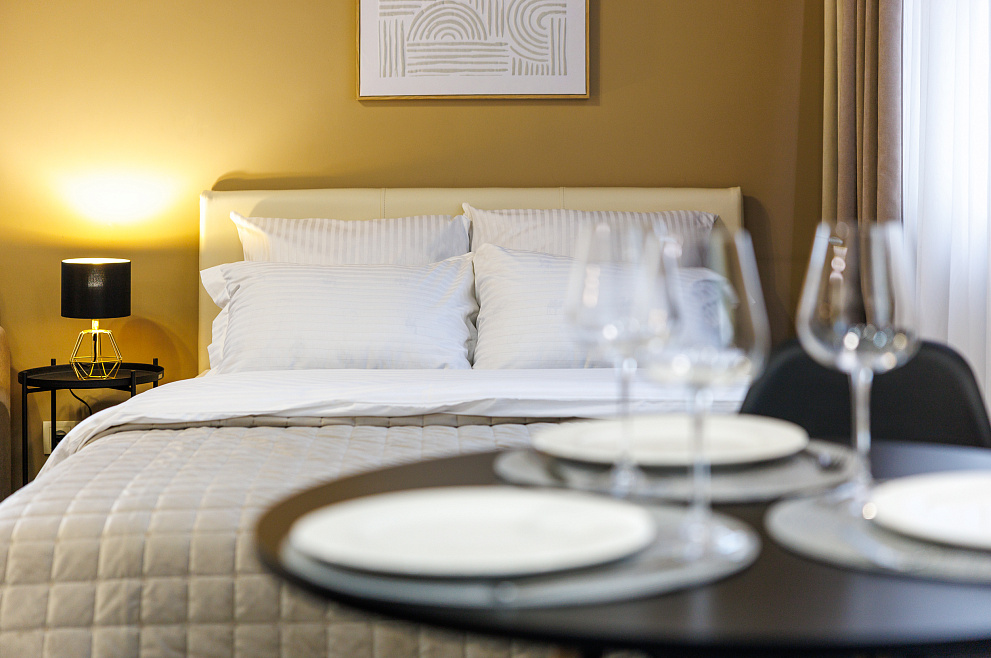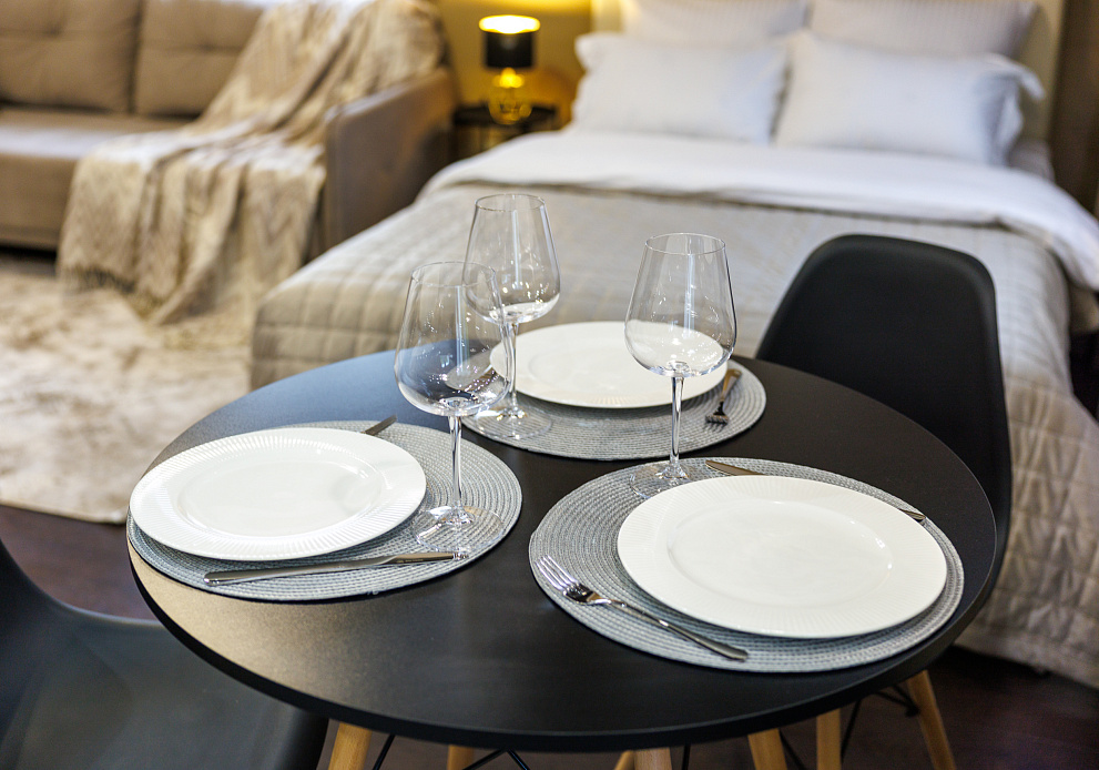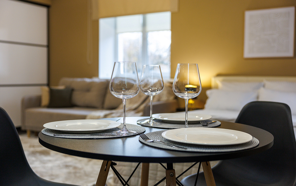 На всех наших объектах есть всё самое необходимое: фен, утюг, стиральная машина, чайник, микроволновка, плита, холодильник, столовые приборы и базовая посуда, чай и кофе.
