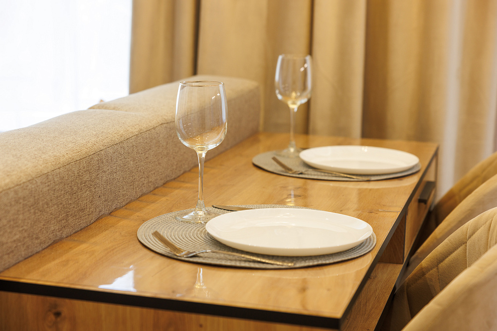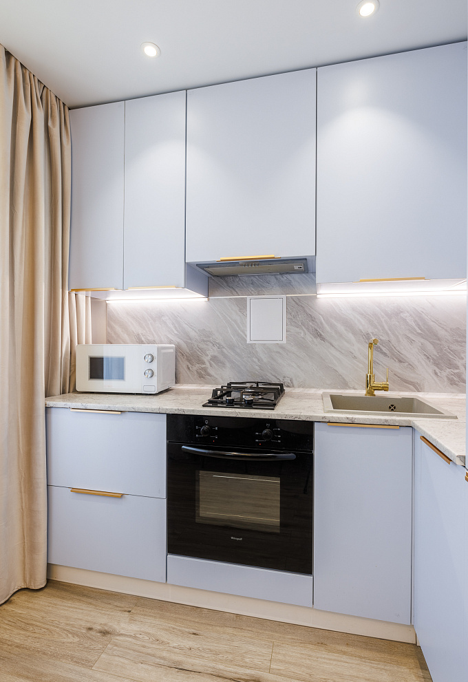 На всех наших объектах есть всё самое необходимое: фен, утюг, стиральная машина, чайник, микроволновка, плита, холодильник, столовые приборы и базовая посуда, чай и кофе.