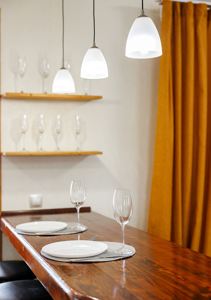 На всех наших объектах есть всё самое необходимое: фен, утюг, стиральная машина, чайник, микроволновка, плита, холодильник, столовые приборы и базовая посуда, чай и кофе.