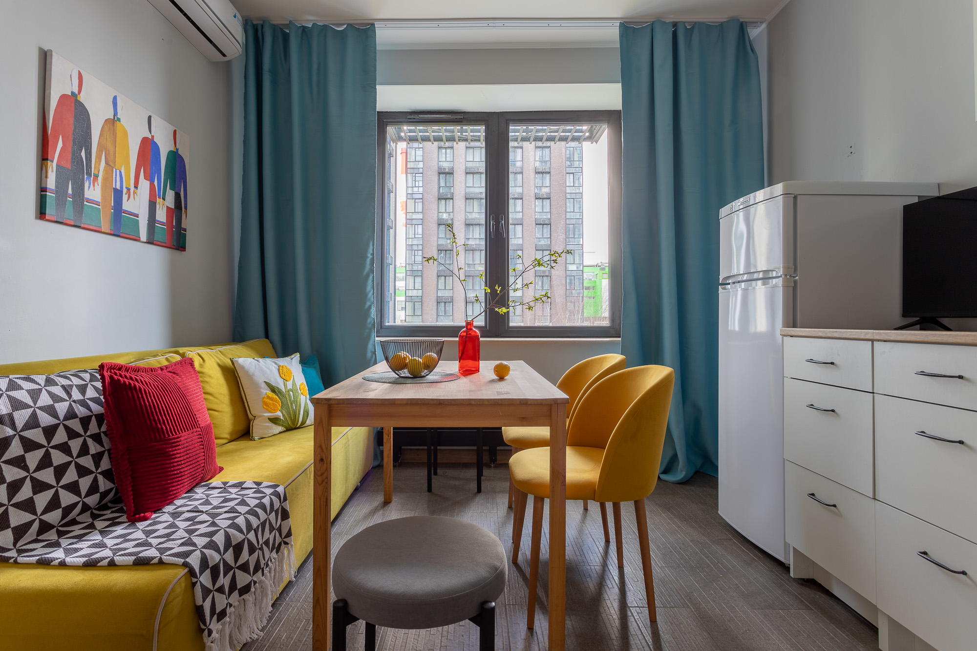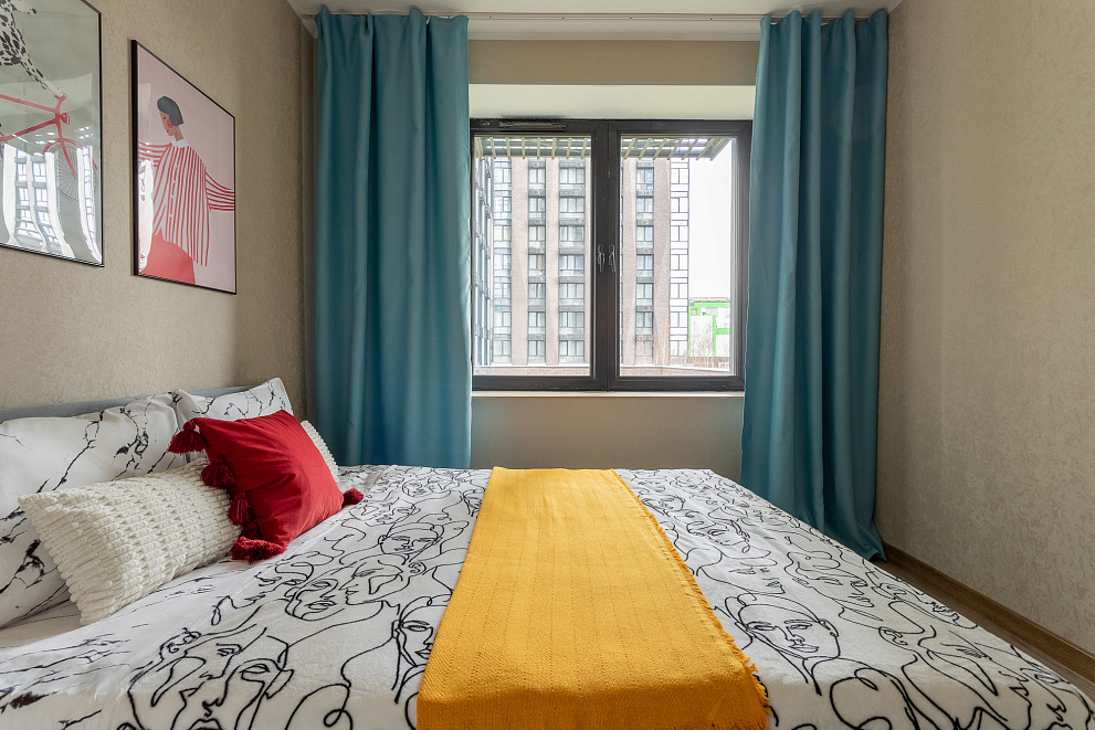 Сдаётся уютная евродвушка с новым ремонтом в скандинавском стиле, расположенная в современном ЖК "Метрополия". Из окон открывается вид на тихий, зелёный дворик, где можно увидеть белую кошку, неспешно прогуливающуюся по траве