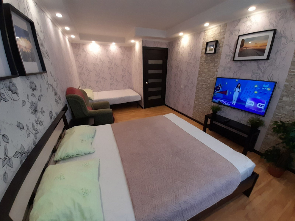 Мы работаем 24/7 — заселение возможно в любое время суток без доплаты, администратор всегда на связи. Размещение до 2 гостей. В квартире есть всё для комфортного проживания: Wi-Fi, ТВ, кухня с техникой и посудой, стиральная машина, водонагреватель, утюг, фен, свежее постельное бельё и махровые полотенца.