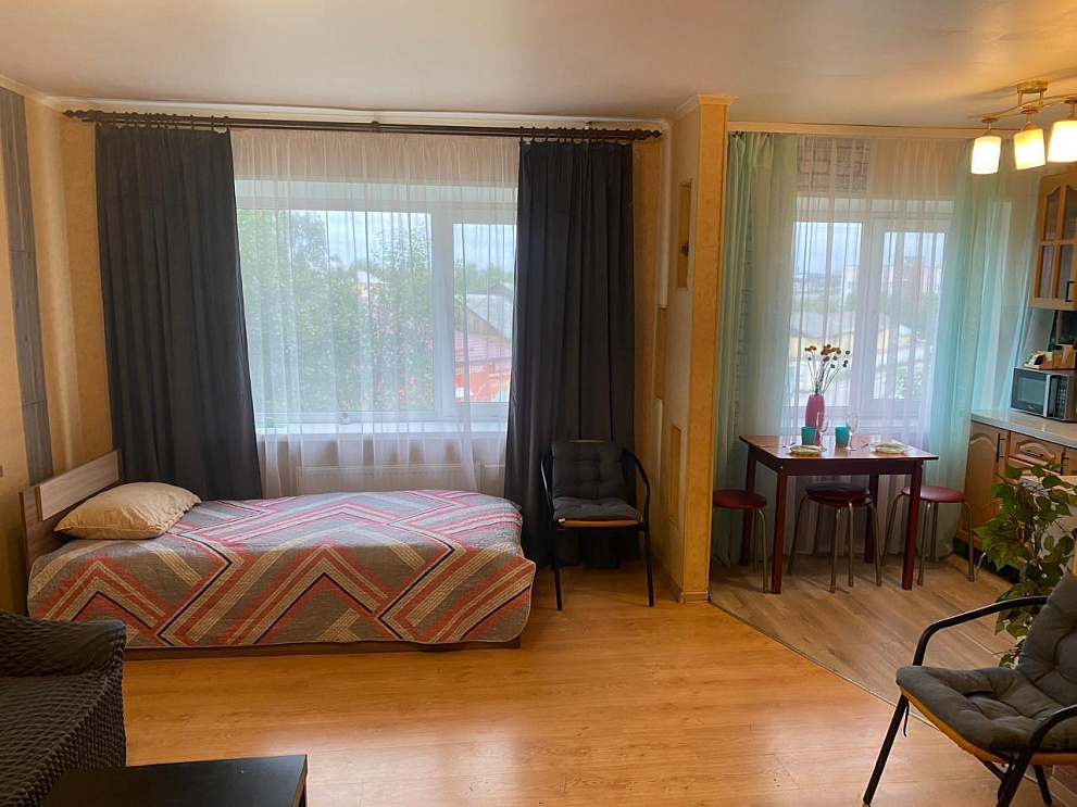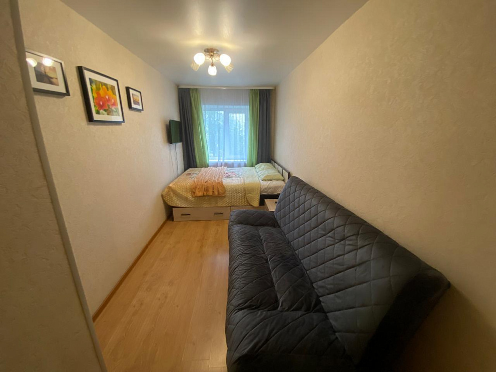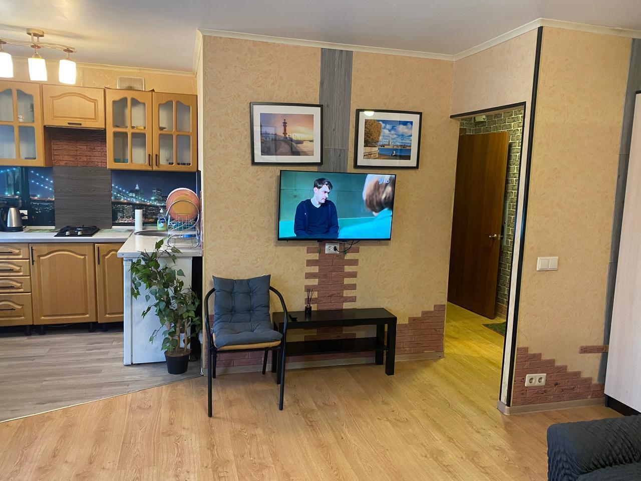 Мы работаем 24/7 — заселение возможно в любое время суток без доплаты, администратор всегда на связи. Размещение до 6 гостей. В квартире есть всё для комфортного проживания: Wi-Fi, ТВ, кухня с техникой и посудой, стиральная машина, водонагреватель, утюг, фен, свежее постельное бельё и махровые полотенца.