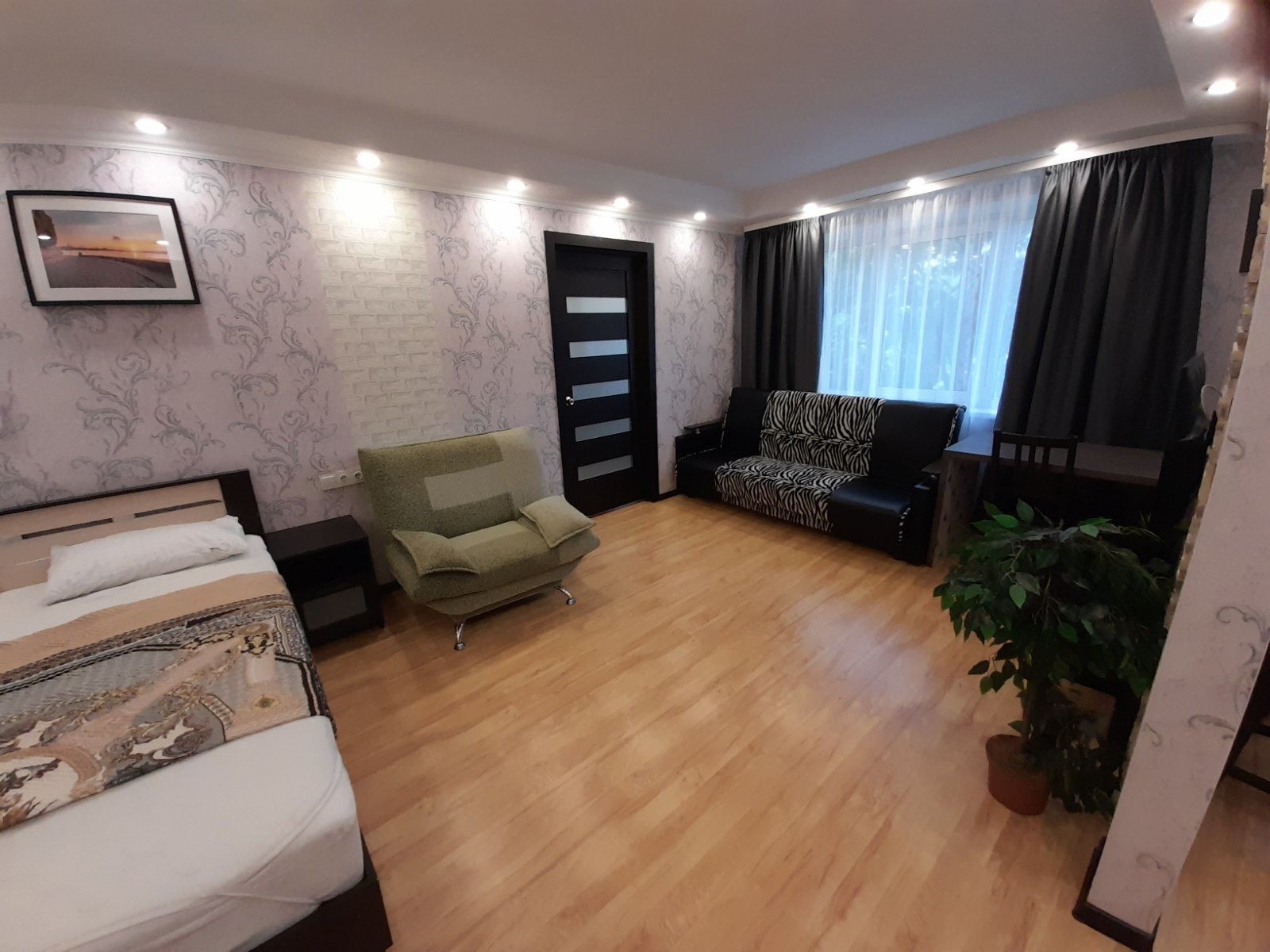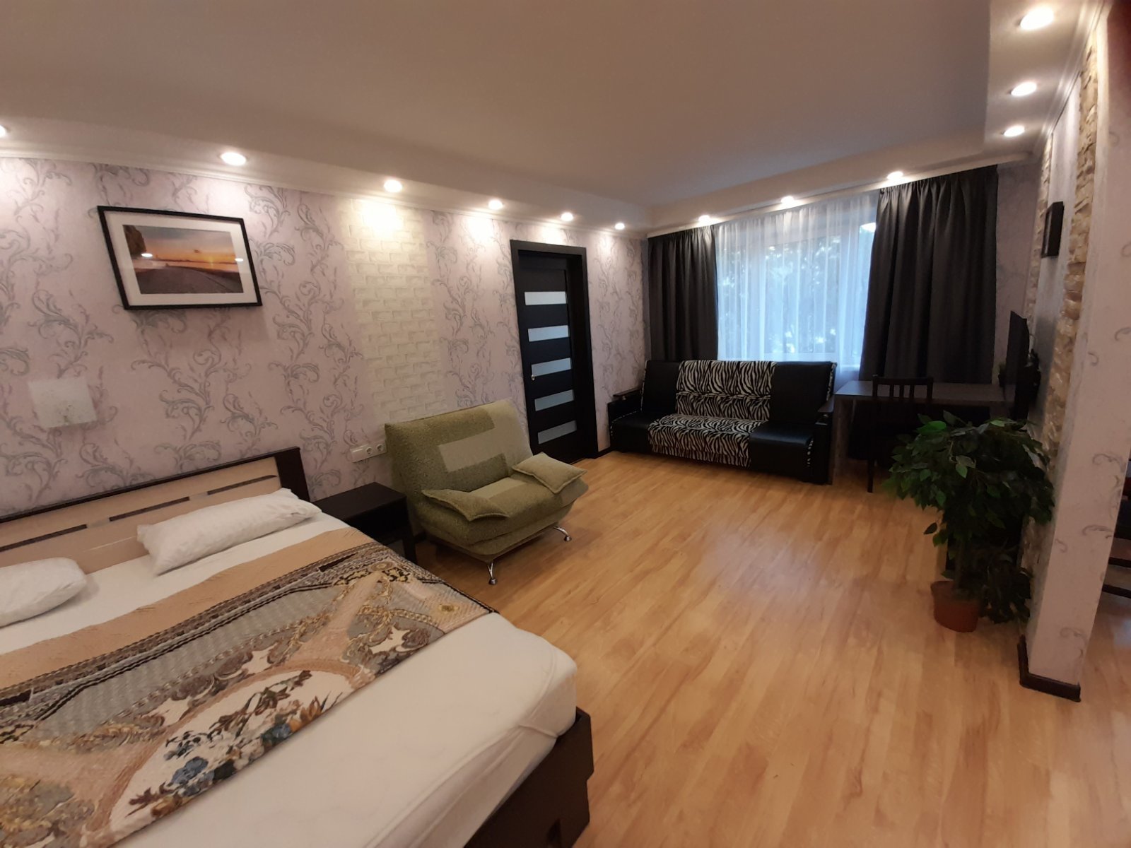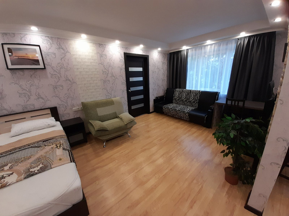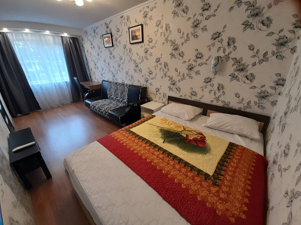 Мы работаем 24/7 — заселение возможно в любое время суток без доплаты, администратор всегда на связи. Размещение до 6 гостей. В квартире есть всё для комфортного проживания: Wi-Fi, ТВ, кухня с техникой и посудой, стиральная машина, водонагреватель, утюг, фен, свежее постельное бельё и махровые полотенца.