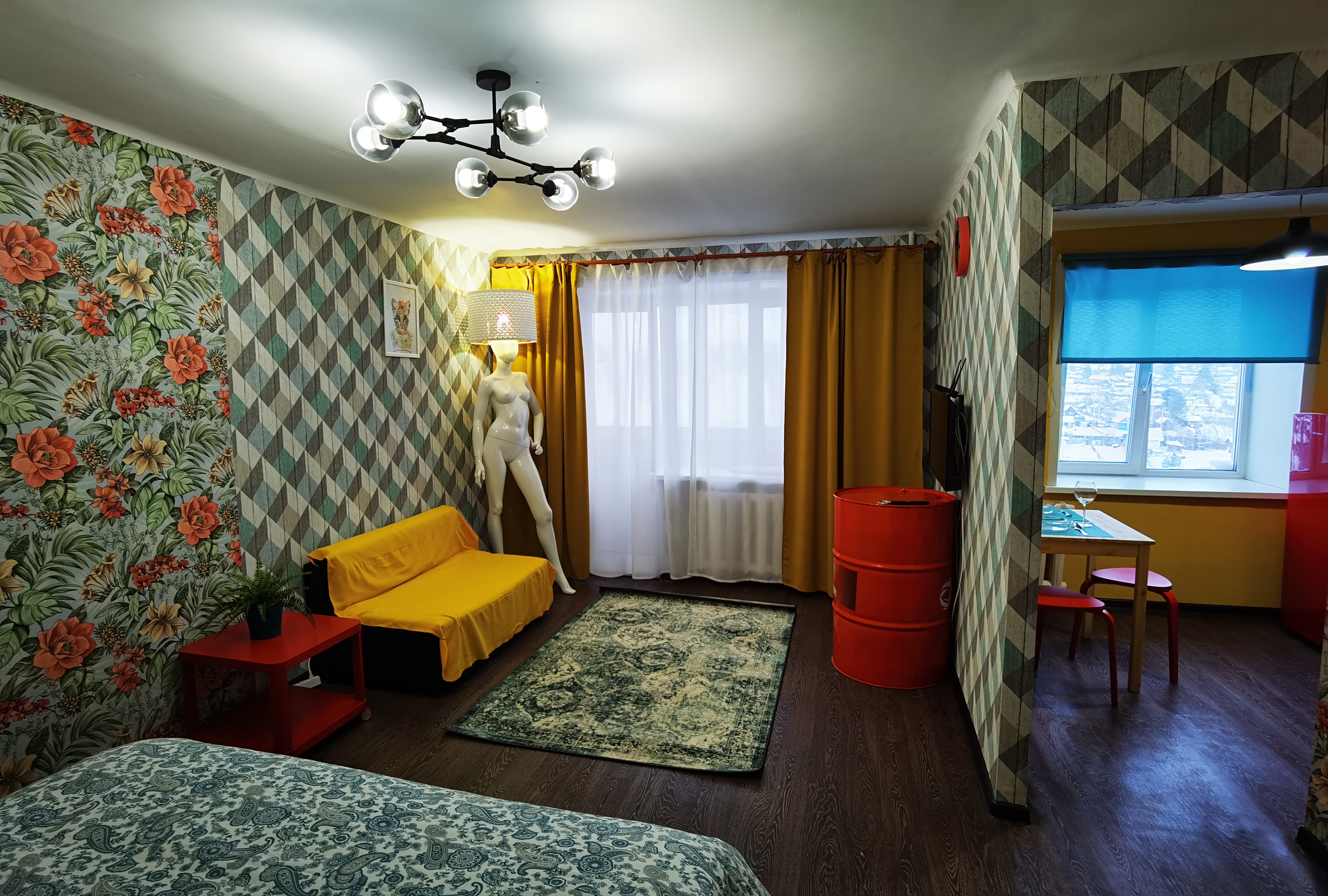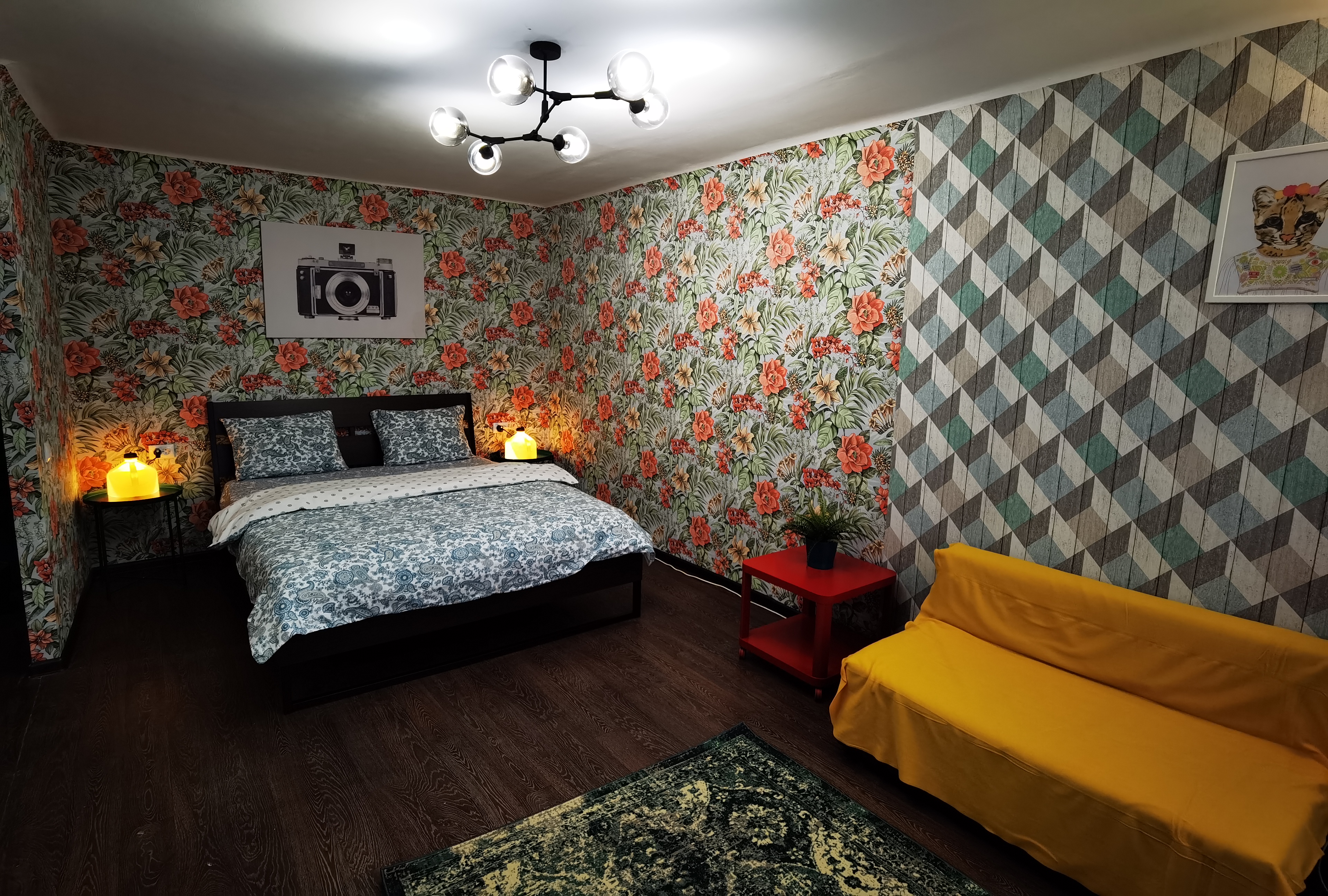 Спальные места: двуспальная кровать+раскладывающийся диван