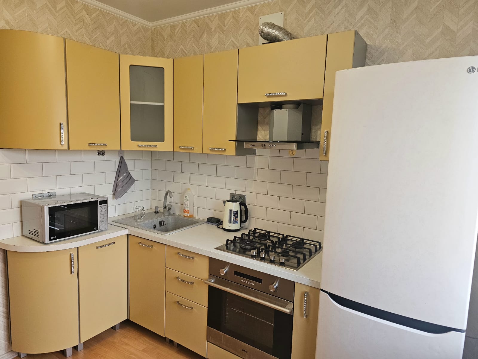 Полностью оборудованная кухня (в том числе духовой шкаф и большой холодильник)