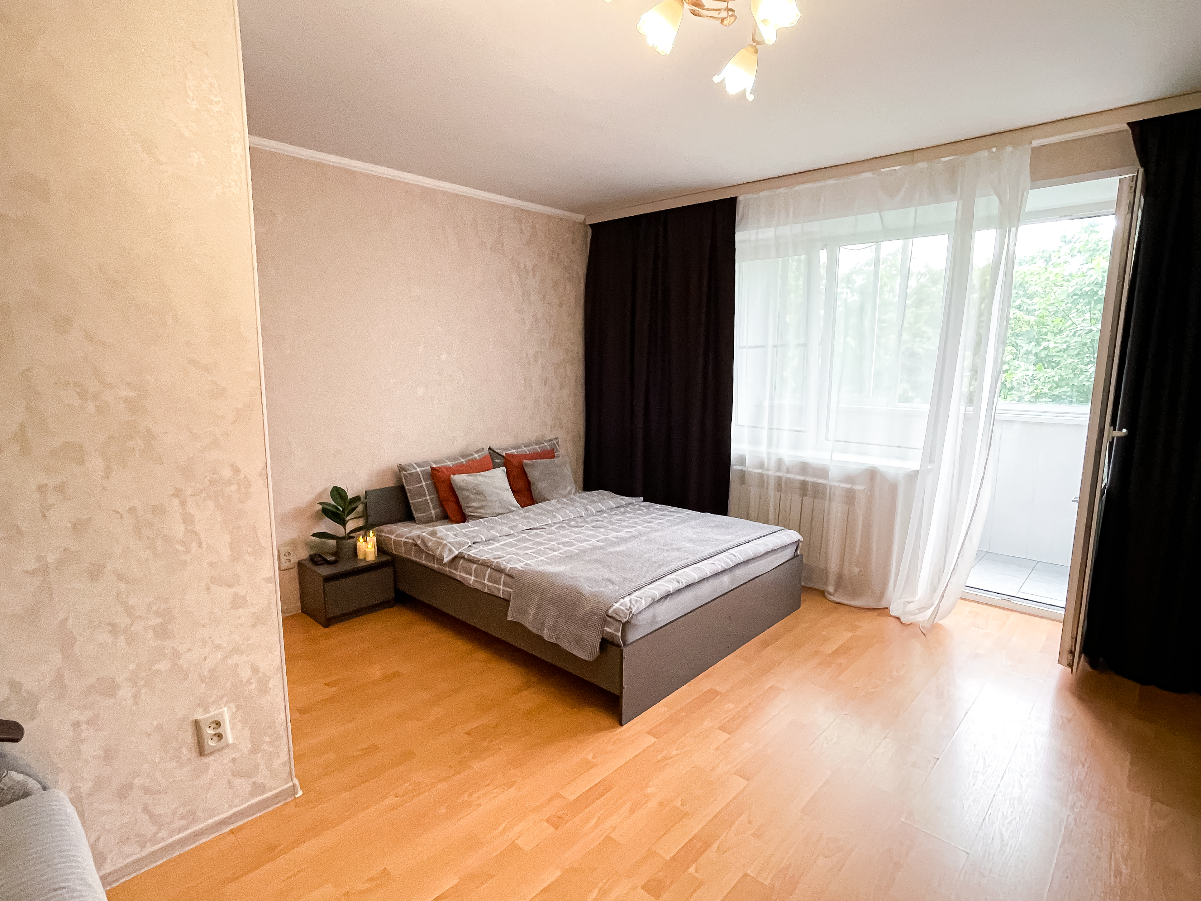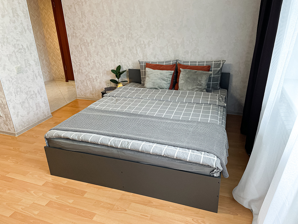 Просторная светлая квартира с двумя раздельными спальными местами, шторами блэкаут и застеклённой лоджией.