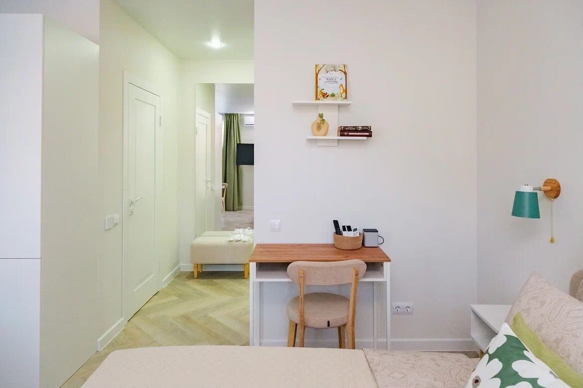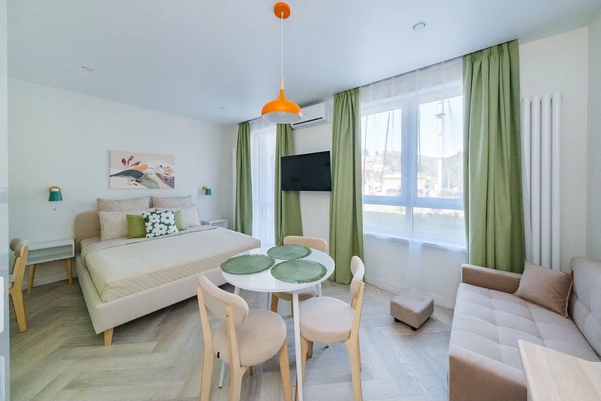 Уютная студия в Кудепсте (Сочи, ул. Искры, 88, корпус 10, кв. 17). 28 кв.м, для 2-3 гостей: двуспальная кровать + диван. 2 этаж, балкон с видом во двор. Кондиционер, холодильник, плита, микроволновка, стиральная/посудомоечная машины, ТВ, фен, утюг, Wi-Fi. Постельное белье, полотенца, гигиена. Матрасы Орматек, выбор подушек. "Умный дом" с Алисой (шторы, свет, пол, воздух). Бесконтактное заселение. С детьми – можно. Животные/курение/вечеринки – нет. Документы. Залог 5000 ₽. Бронируйте незабываемый отдых!