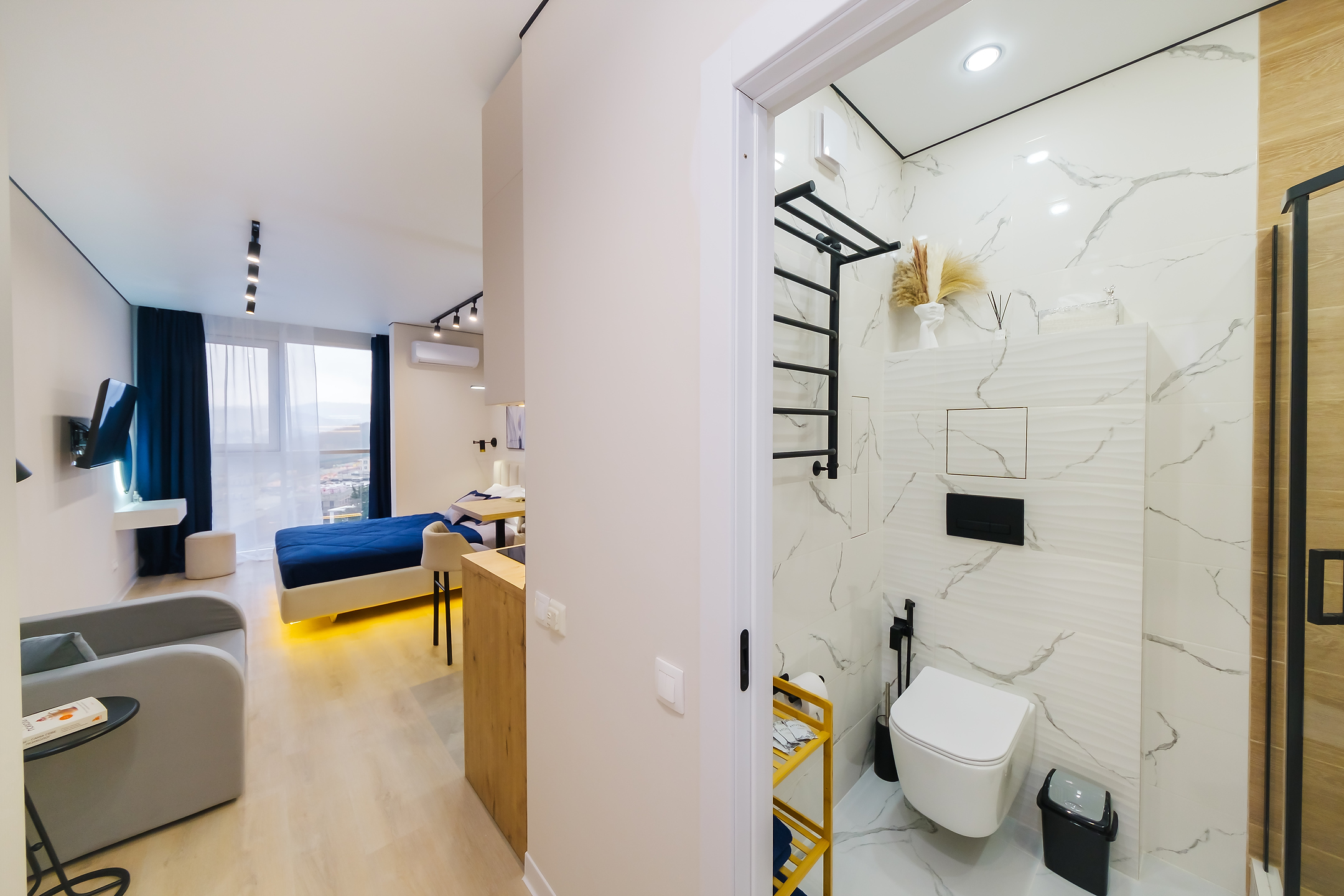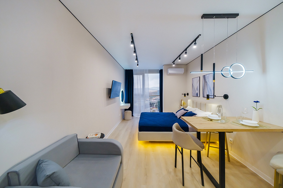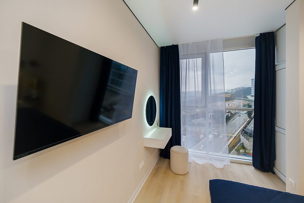 Вас ждет комфортабельная студия в современном ЖК "Сочи Парк". Наслаждайтесь панорамой горы Ахун и величественного Кавказского хребта прямо из вашей квартиры!