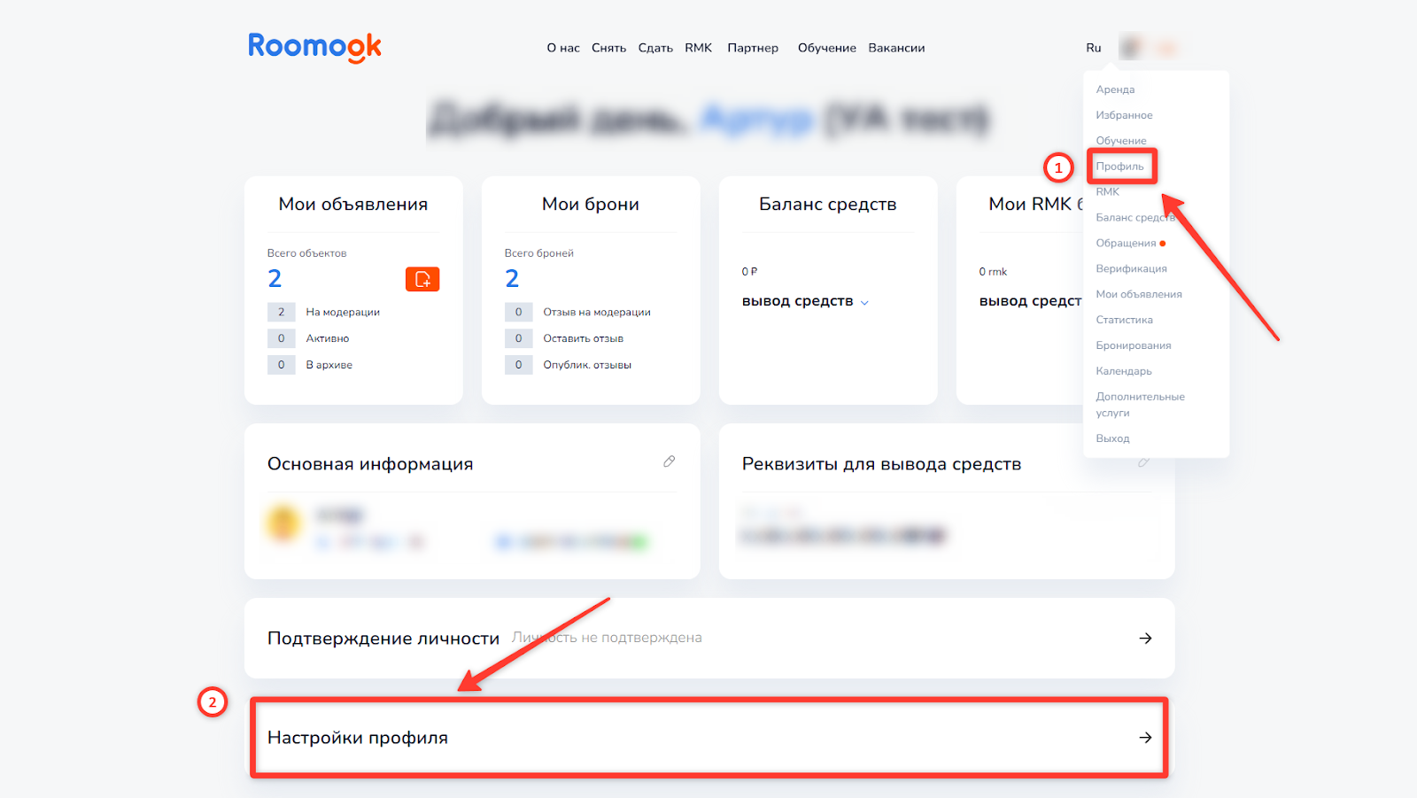 1. Перейдите в раздел «Профиль».